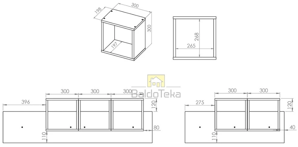 Plotis/Aukštis/Gylis: 30/30/20 cm.