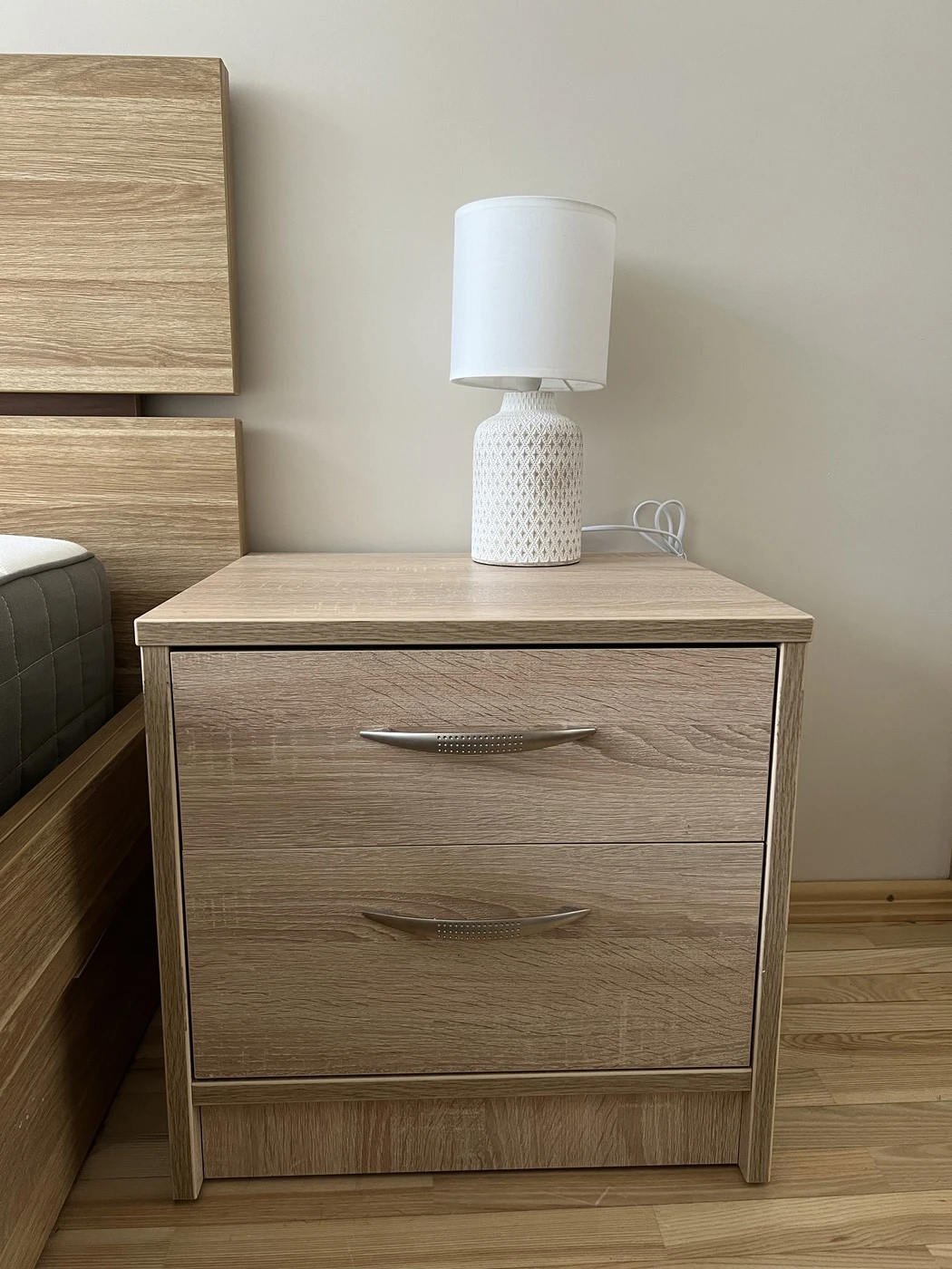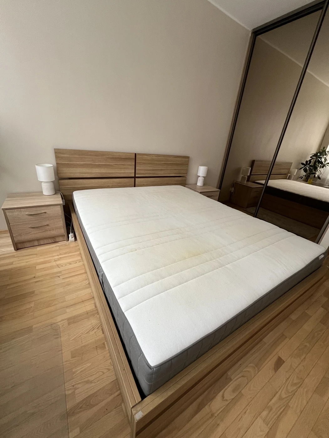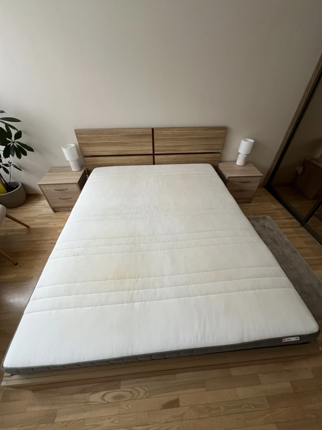 Didelė patalynės dėžė. Parduodama kartu su spintelėmis ir čiužiniu.