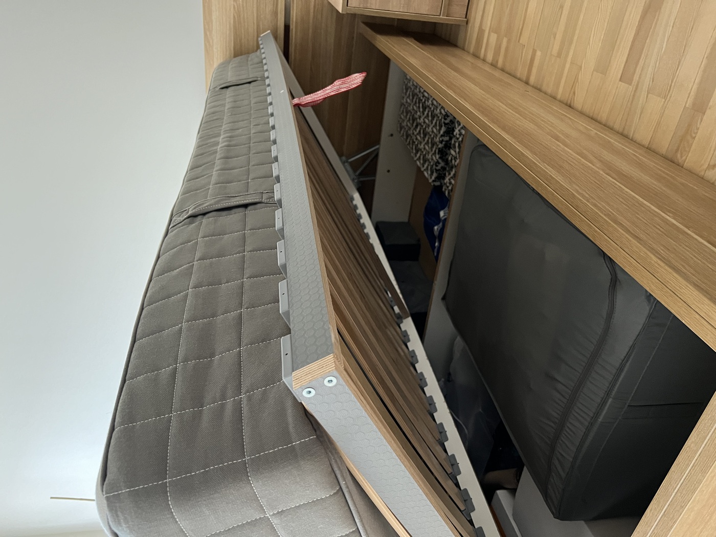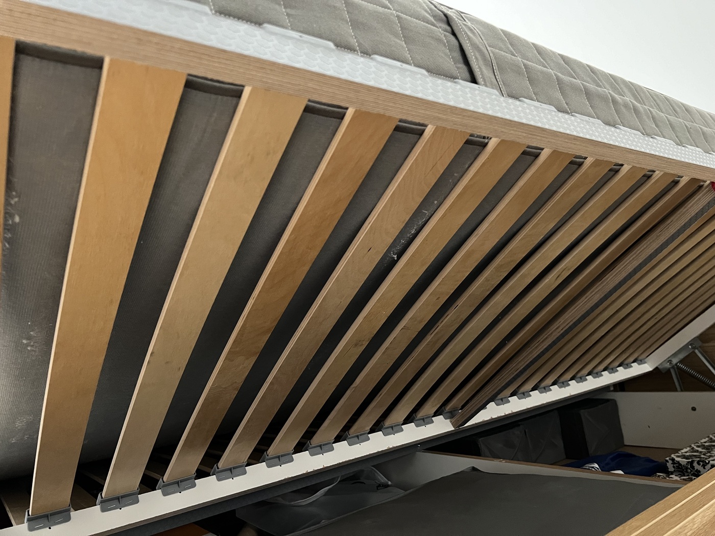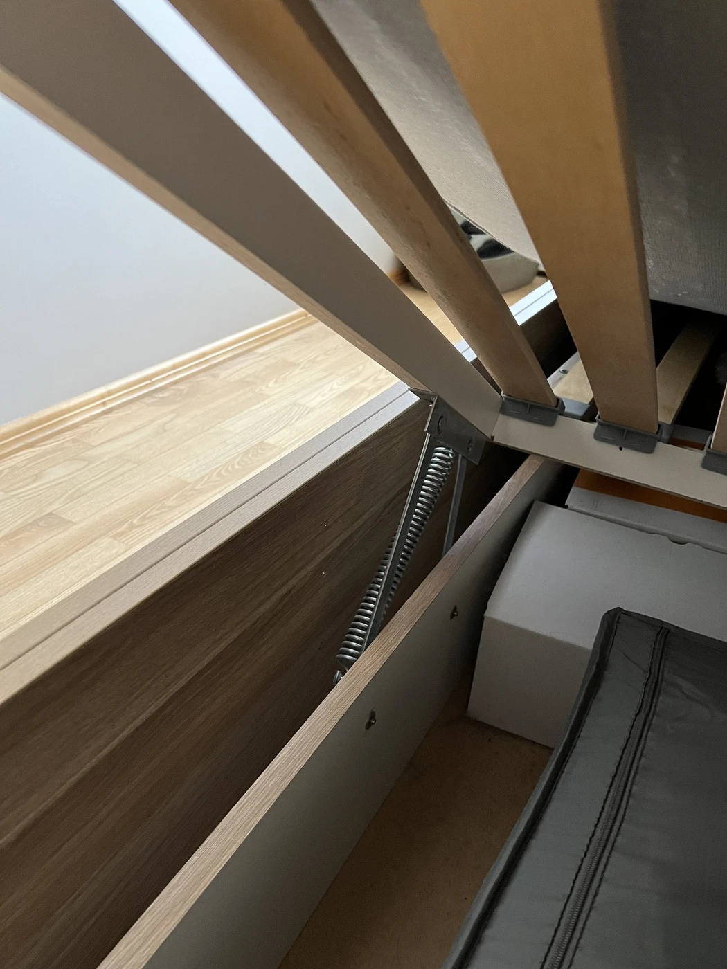 Didelė patalynės dėžė. Parduodama kartu su spintelėmis ir čiužiniu.
