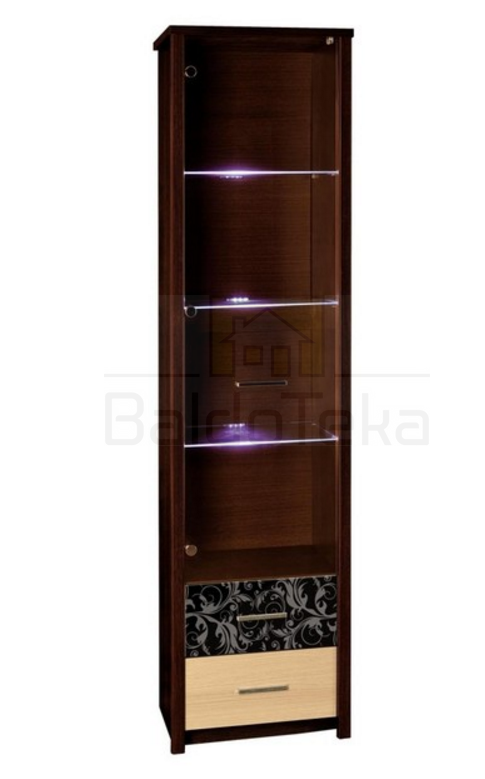 Spalva – venge+ąžuolas lindberg+juodas stiklas su ornamentais.