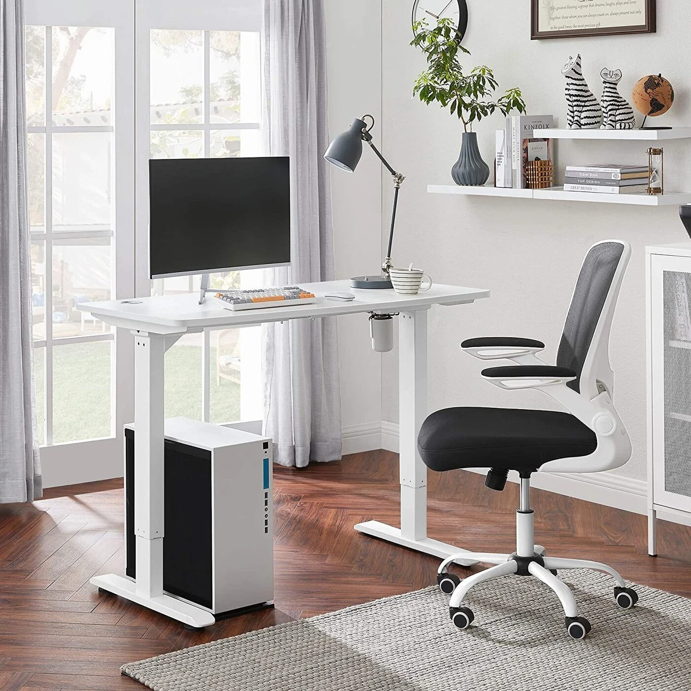 Aprašymas buvo automatiškai išverstas, gali pasitaikyti klaidų.Jei jums patinka biuro darbas, bet jūsų kūnas kenčia, kodėl gi neišbandžius reguliuojamo aukščio elektrinio stalo stovo? Ne tik laimingai pradėsite darbą, bet ir baigsite darbą laimingai, patenkinti ir be skausmo. Kiti šio elektrinio stalo stovo privalumai: Reguliuokite šio stalo aukštį nuotolinio valdymo pultu. Bepakopis aukščio reguliavimas ir žemas triukšmas Išsami informacija apie gaminį: Spalva: balta Medžiaga: MDF (vidutinio tankio medienos plaušų plokštė), plienas Dydis: 120 x 60 x (73-114) cm (P x P x A) Aukščio reguliavimas: 73-114 cm Garsas: 50 dBAreguliavimo greitis: 25 mm/sMaks. statinė apkrova: 100 kg svoris: 31,5 kgPakuotės turinys: 1 x elektrinis stalinis stovas 1 x stalviršis 1 x adapteris 1 x nuotolinio valdymo pultas 1 x priedų paketas 1 x instrukcija SONGMICS Pastabos: Kėlimo ir nuleidimo metu įsitikinkite, kad stalui nėra kliūčių. Nestatykite stalo tiesiai prie sienos Šis gaminys skirtas naudoti tik patalpose. Visus elektrinius komponentus laikykite toliau nuo skysčių. Vienu metu gaminį naudokite tik ne ilgiau kaip 2 minutes. Pasibaigus šiam laikotarpiui, stalo rėmas neturėtų būti judinamas 18 minučių, kad nepažeistumėte variklio. Nedėkite po stalu aukštesnių nei 50 cm daiktų, kad nepažeistumėte nuleidimo proceso metu. Neardykite atskirų šio gaminio dalių be profesionalūs patarimai.
