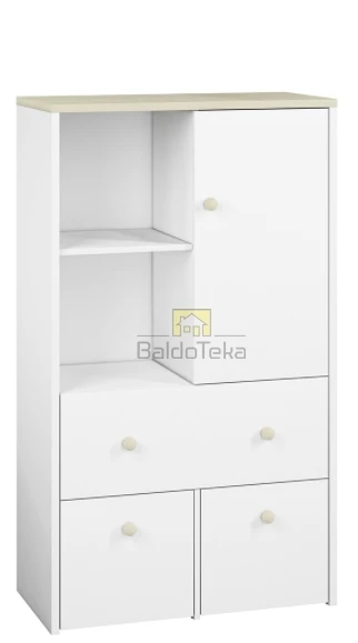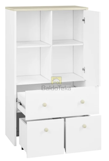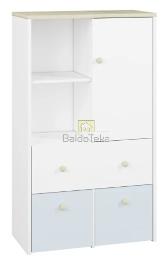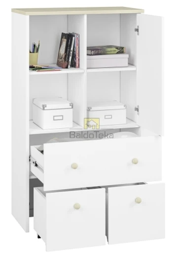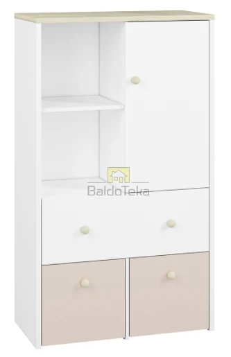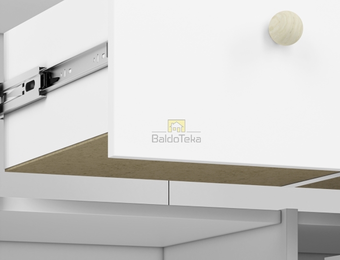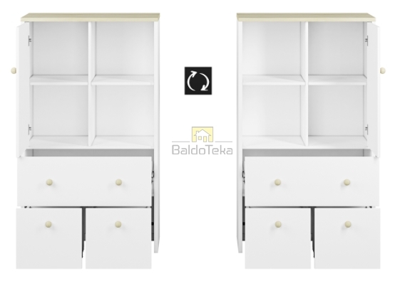 Standartinė stalčių durelių spalva – balta. Yra galimybė įsigyti švelniai rožinės arba melsvos spalvos dureles.