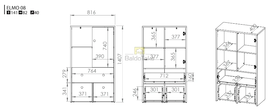 Plotis/Aukštis/Gylis: 82/141/40 cm.