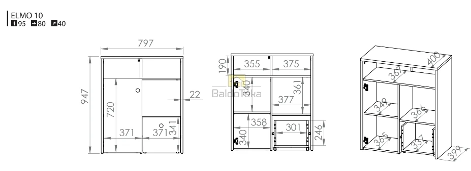 Plotis/Aukštis/Gylis: 80/95/40 cm.