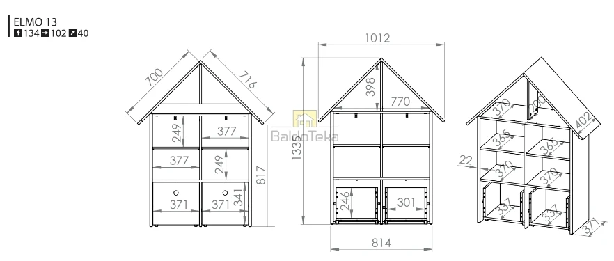 Plotis/Aukštis/Gylis: 101/136/40 cm.