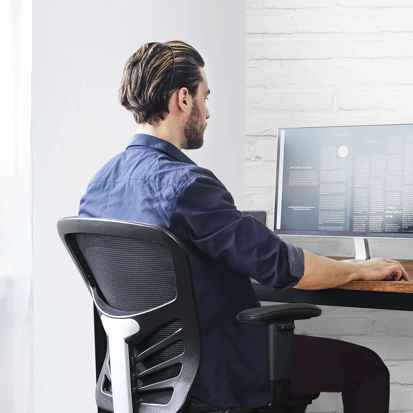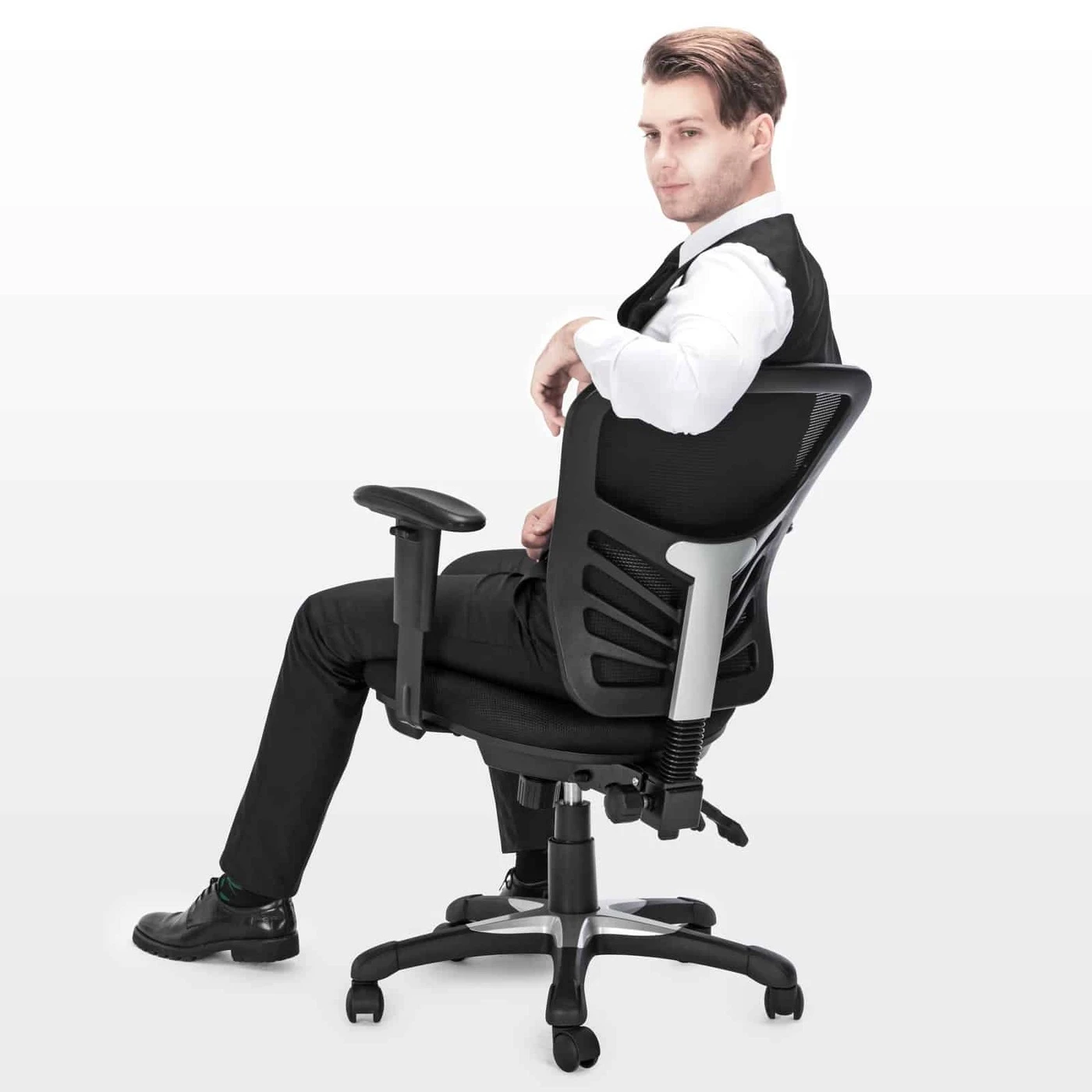Aprašymas buvo automatiškai išverstas, gali pasitaikyti klaidų.Biuro kėdė, kuri suteikia jums komfortą ir gerą savijautą. Ši pasukama biuro kėdė yra su nailoniniais ratukais. Tačiau tai, kas ją išskiria iš kitų įprastų biuro kėdžių, yra ergonomika ir tinklinis audinys. Tiesą sakant, ši ergonomiška biuro kėdė leis maksimaliai padidinti produktyvumą darbo valandomis, sumažindama nuovargį ir stresą, kurį sukelia ilga sėdėjimo padėtis. Jis pagamintas iš tinklelio nuo prakaito. Pavargome nuo prakaito prilipti prie kėdės. Dėl kvėpuojančio tinklelio bjaurus prakaito kvapas pagaliau išnyko! Jame taip pat yra juosmens atrama ir 3 svirtys, kurios vienu metu reguliuoja sėdynę, atlošą ir atlošą bei sėdynę. Minkšti PU porankiai yra reguliuojamo aukščio. Nelaukite ilgiau ir pasirenkite šiuo esminiu įrankiu! Mūsų puikus klientų aptarnavimas yra jums prieinamas prieš ir po pirkimo ir atsakys į jūsų klausimus el. paštu per 24 valandas. Mūsų prioritetas yra tai, kad esate visiškai patenkinti, todėl mes tai garantuojame. Pasirinkite SONGMICS!Prekės informacija:- Spalva: juoda- Gaminio dydis:- Bendras aukštis: 96-105,5 cm- Plotis cm: 67 cm- Gylis: 63 cm- Sėdynės aukštis: 45-54,5 cm- Sėdynės Plotis cm: 49 cm- Sėdynės gylis: 45 cm- Porankių aukštis (nuo sėdynės): 22,5-30 cm, atlošo aukštis: 48-55 cm, Ø pagrindas: 66 cm, Ø ratukai: 50 mm, Ø kaištis: 11 mm, medžiagos, pagrindas: nailonas, porankio velenas: plienas . Porankių užvalkalas: PU atlošas: poliesterio tinklelis, sėdynė: putplastis, poliesterio tinklelis svoris: 18,1 kg maksimalus keliamumas: 120 kg pristatymo apimtis: - 1 x biuro kėdė - 1 x šešiakampis raktas - 1 x montavimo krepšys - 1 x instrukcijos ( DE, EN, FR, ES, IT)