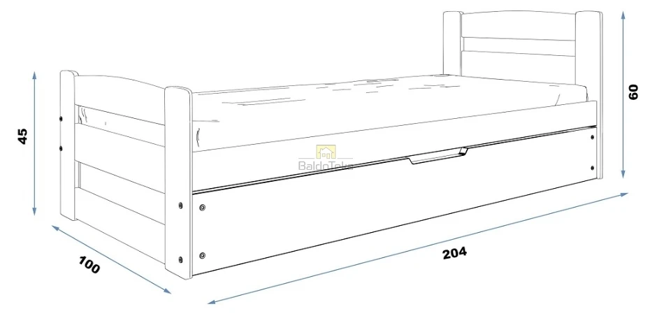 Su 190 x 90 cm čiužiniu ir patalynės dėže.