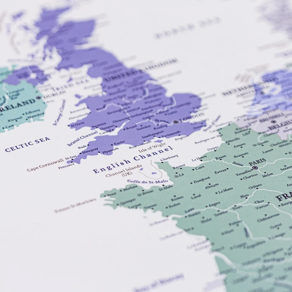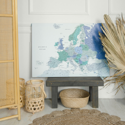 XL 150×100 cm – 199 €, L 120×80 cm – 159 €, M 100×700 cm – 119 €. MEDŽIAGOS Žemėlapis išliks ryškus ir puikios išvaizdos daugybę metų, nes jam pagaminti naudojamos aukščiausios kokybės medžiagos. Išspausdintas vaizdas yra padengiamas vandens pagrindo rūgščių neturinčiu apsauginiu laku, kuris atitinka muziejuose saugomų eksponatų reikalavimus - iki 80-100 metų spalvos išlieka nepakitusios. Kiekvienas žemėlapis yra kruopščiai pagamintas Lietuvoje profesionalių MyPoint meistrų. Smulkios tekstūros ir tvirta 310g/m² drobė Coala,Aukštos raiškos Mutoh spausdintuvas, užtikrinantis aiškų skaitomumą (Japonija),Originalūs ir ilgaamžiai dažai, suteikiantys ryškias spalvas (Japonija),Nuo blukimo ir neigiamo aplinkos poveikio apsaugantis matinis spaudos lakas (Jungtinė Karalystė);Tvirtas natūralaus medžio porėmis užpildytas su putų plokšte – lengvai konstrukcijai ir patogiam smeigtukų naudojimui (Lietuva).