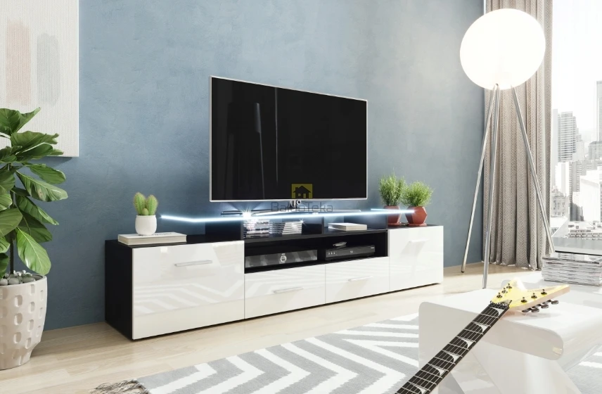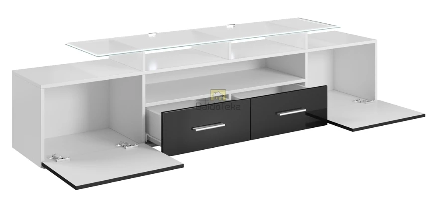 Spalva: korpusas – juodas matinis, fasadai – balti blizgūs.