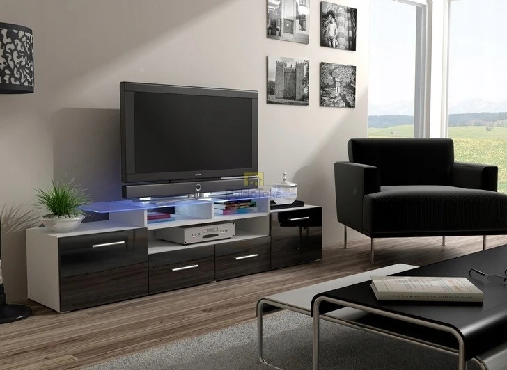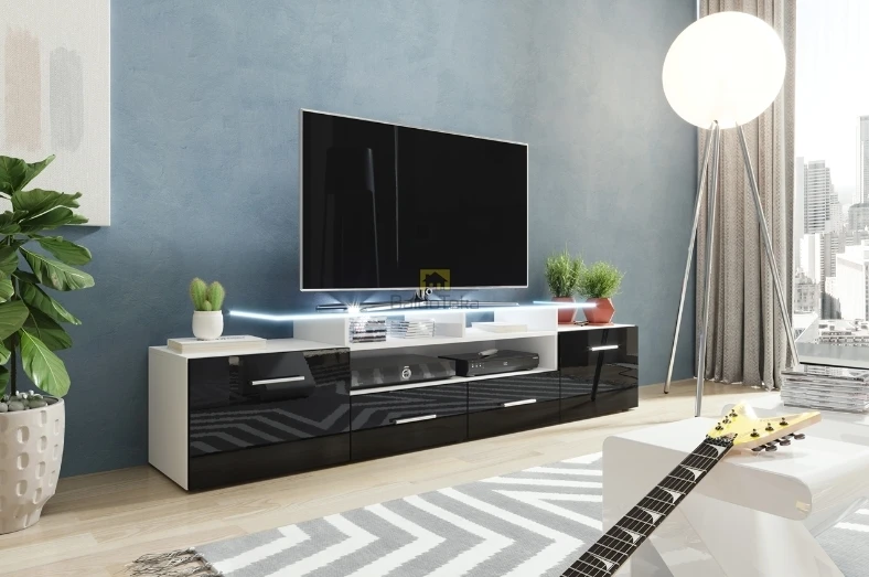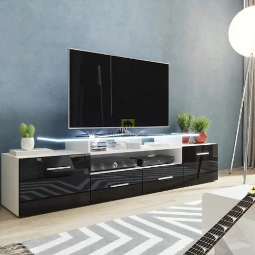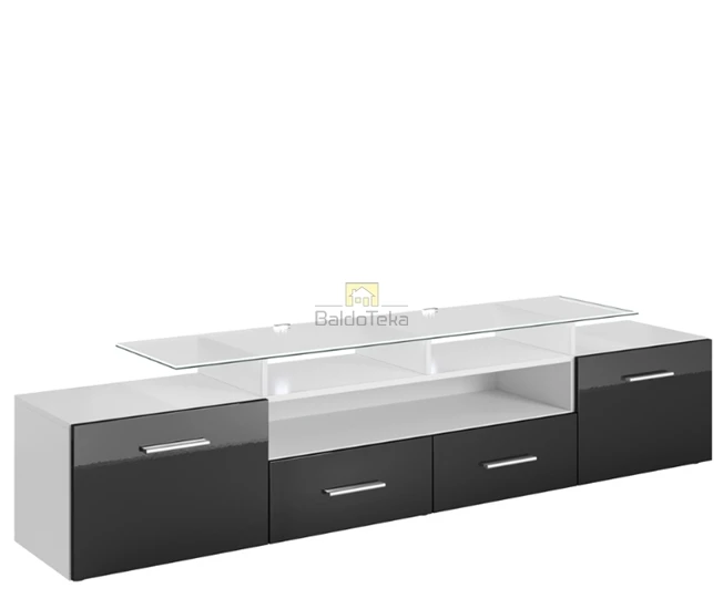 Spalva: korpusas – baltas matinis, fasadai – juodi blizgūs.