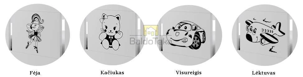 Komplektacijoje pridedami 4 skirtingi piešinėliai (lipdukai).