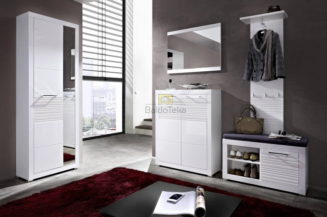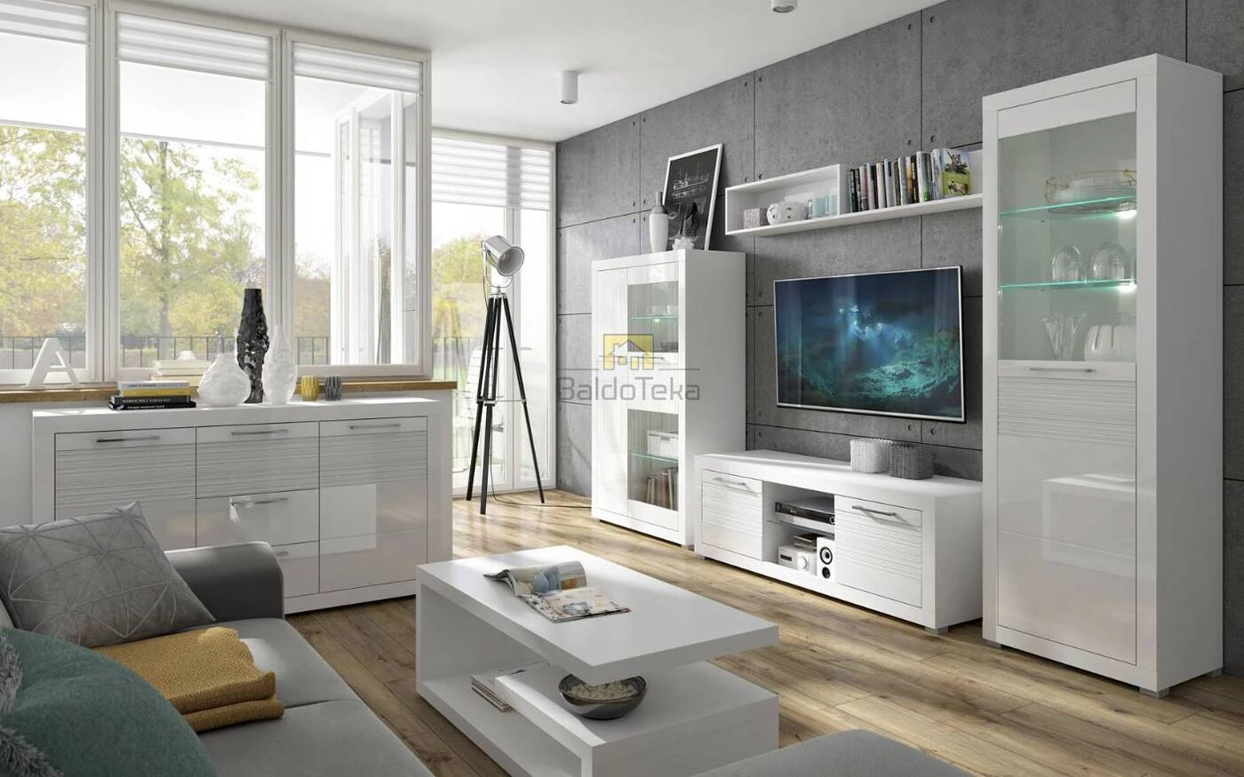 Kompaktiška 92x66x2 cm FLAMES spintelė – idealus sprendimasBalti blizgūs FLAMES baldai – modernus ir funkcionalus dizainas
