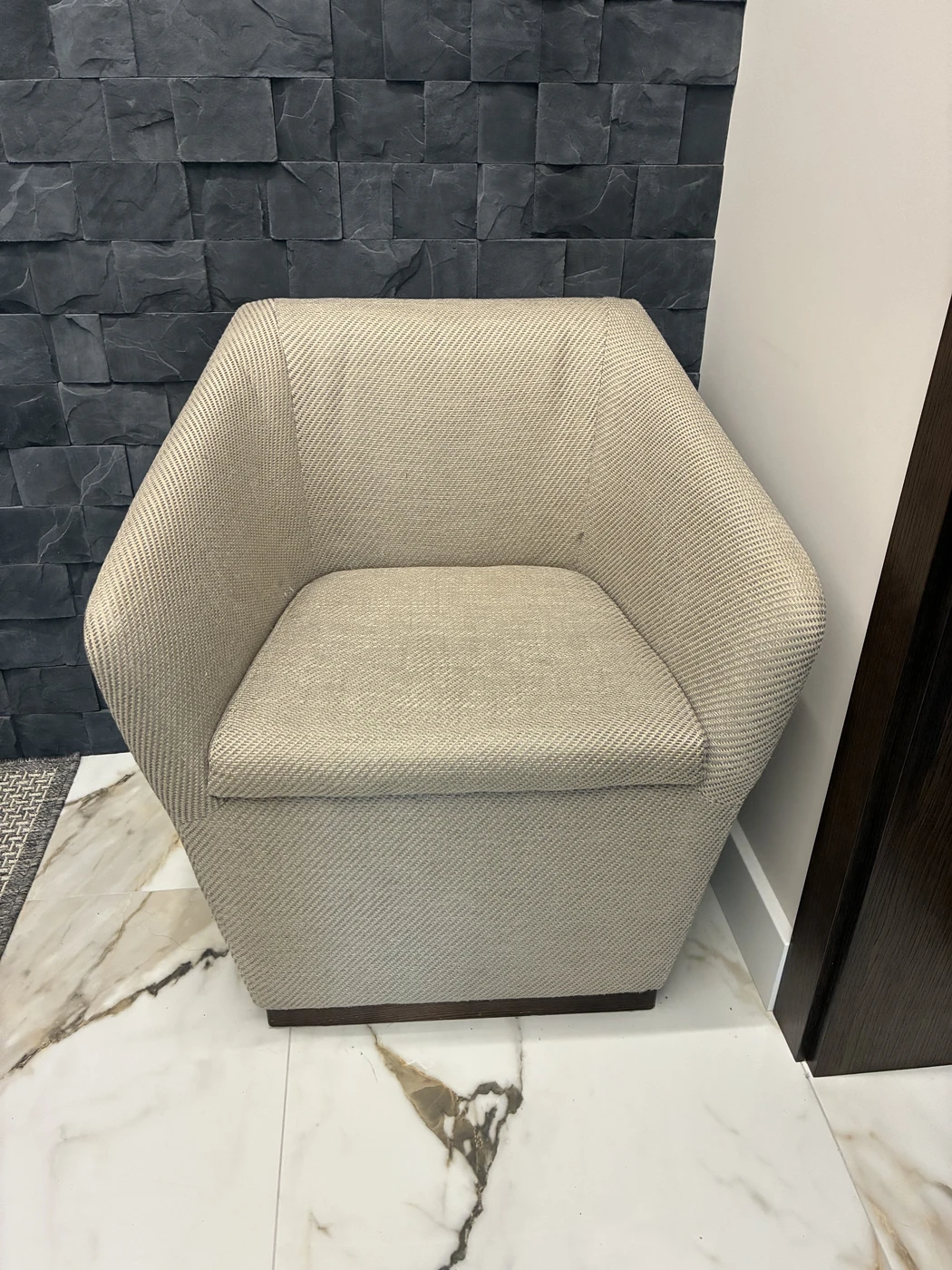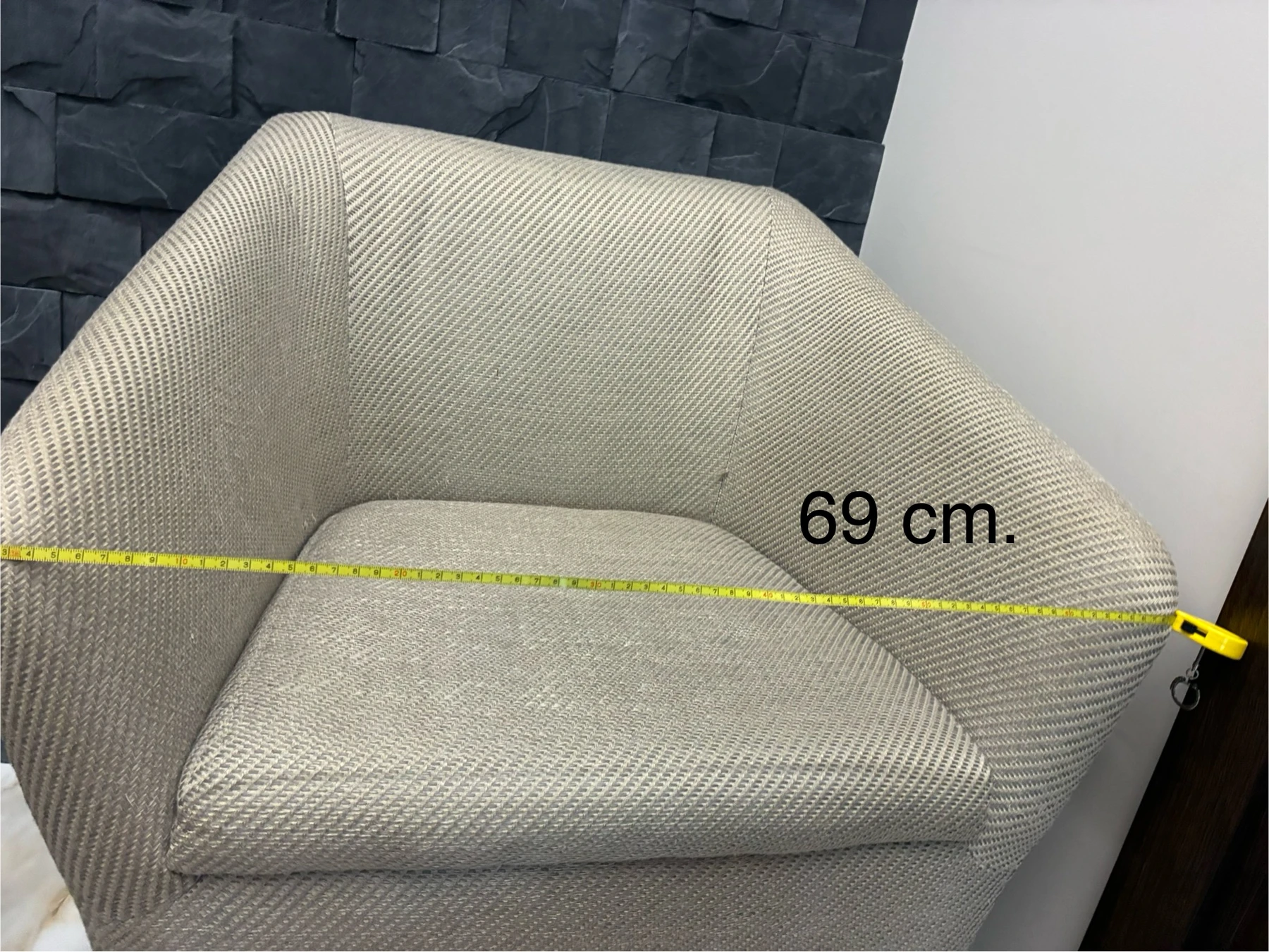 Parduodamas pilkas foteliukas – kompaktiškas, tvirtas ir patogus. Medžiaga dėvėta, todėl yra kelios švelnios patamsėjimo vietos bei smulkūs siūlų pakitimai, kurie nesumažina jo funkcionalumo. Foteliukas sveria pakankamai, todėl yra stabilus ir tvirtas. Atsiimti paties Vilniuje