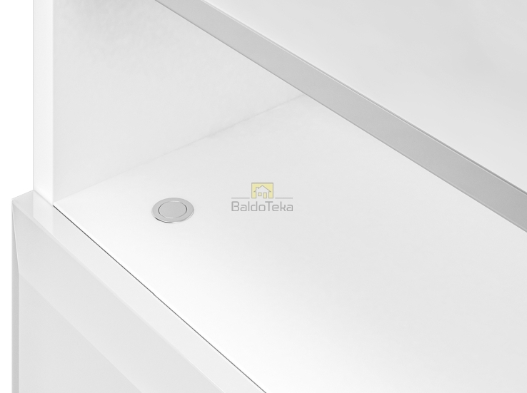 Plotis/Aukštis/Gylis: 45/53/34 cm. • Aukštos kokybės LMDP/MDF/ABS/folija. • Pilno ištraukimo bėgeliai. • Su išoriniu LED apšvietimu. Spalva: balta matinė/balta blizgi.