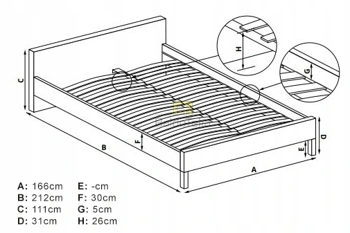 Lovos rėmo Ilgis/Plotis/Aukštis: 212/166/111 cm.