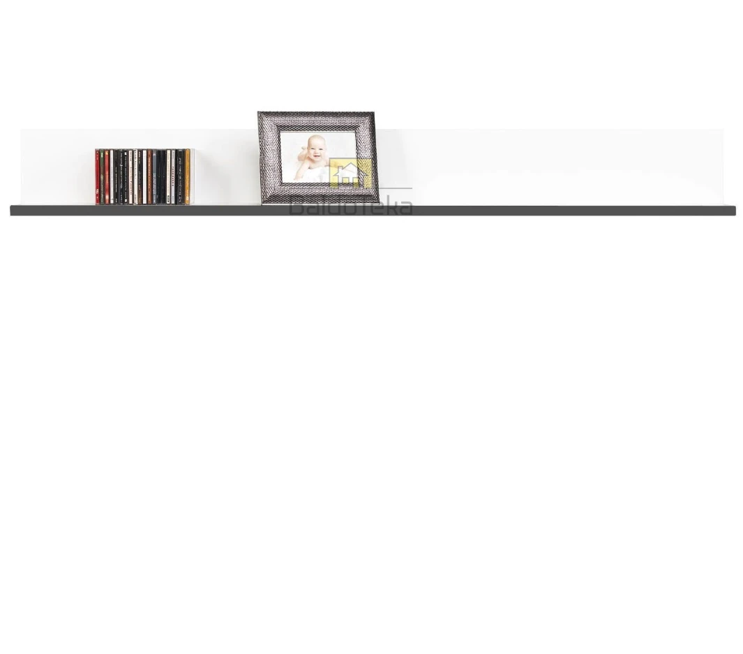 Ergonominė LMDP spinta 155x21x19,5 cmModerni balta spinta su pilka apdailaPlati spinta su matiniu finishu ir grafito elementaisKompaktiška balta spinta su pilka dekoracijaStilinga LMDP spinta balta ir pilka