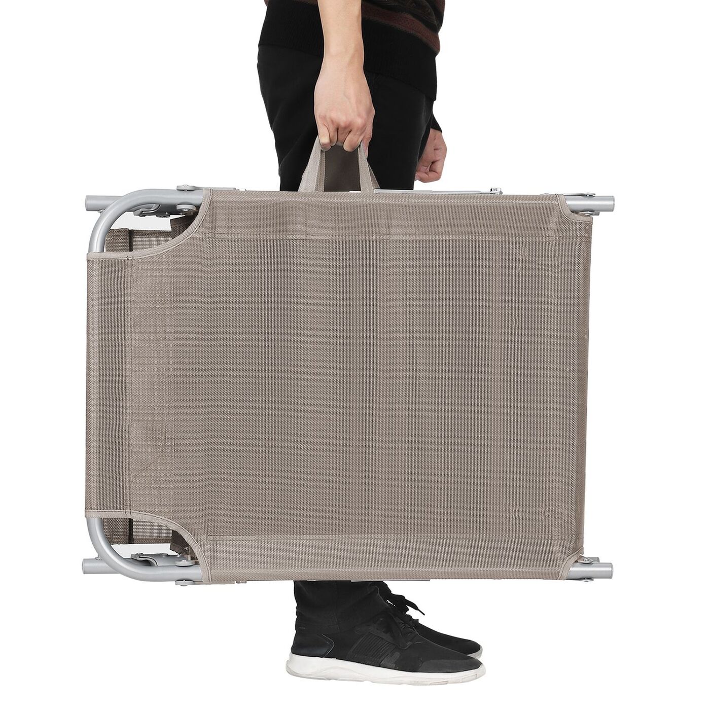 Aprašymas buvo automatiškai išverstas, gali pasitaikyti klaidų. Išsami informacija apie gaminį: - Spalva: Taupe - Medžiaga: Metalas, sintetinio pluošto audinys - Dydis: 53 x 193 x 29,5 cm (I x P x A) - Svoris: 7,1 kg - Maksimali statinė apkrova: 150 kg ; Pakuotės turinys: - 1 x saulės gultasSONGMICS Pastabos: - Maksimali gulto apkrova yra 150 kg. Neviršykite šio maksimalaus svorio - Prieš naudodami visiškai išskleiskite saulės gultą - Nelaikykite gaminio lauke ilgą laiką; nelaikykite gulto nuo lietaus ar tiesioginių saulės spindulių.