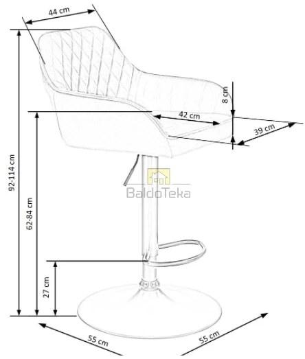 Aukštis/Plotis/Gylis: 62÷84 x 92÷114/55/55 cm