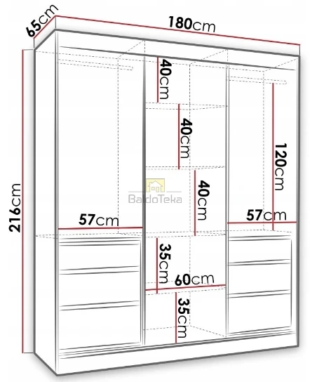Plotis/Aukštis/Gylis: 180/216/65 cm.