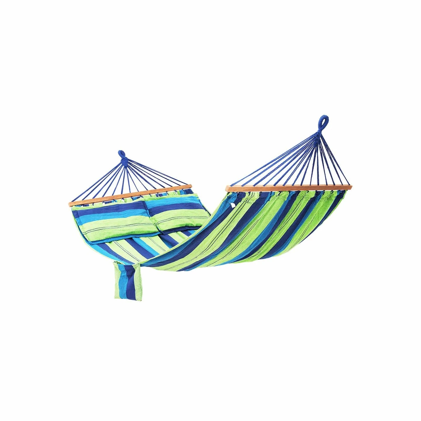 Aprašymas buvo automatiškai išverstas, gali pasitaikyti klaidų.Puiki vieta sėdėti ir gulėti viduje ir lauke / mažiems ir dideliems! Absoliutus akį traukiantis žmogus. Kas gali būti maloniau, nei po sunkios dienos atsigulti į pakabinamą „Songmics“ kėdę ir leisti sielai pakibti. Atpalaiduojančio ir raminančio supimo metu įgyjate fizinę ir psichinę savijautą. Gaivios, linksmos spalvos ir didžiulis audinio paviršius paverčia mūsų pakabinamą kėdę ramybės oaze. Nesvarbu, ar esate sode, balkone ar stovyklaujant, didelis audinio paviršius žada nepaprastą komfortą. Mūsų kilimėlis yra itin lengvas, patvarus ir stabilus, gali tarnauti kaip sofa, sūpynės ar net lopšys vaikams. Jei reikia, juos galima prispausti prie hamako stovo arba tiesiog pritvirtinti tarp dviejų medžių! Dėl mažo svorio ir kompaktiškų matmenų hamakas yra idealus kompanionas. Pastaba: 1. Išskleisdami laikykitės hamako lankstymo žingsnių tvarkos, kad vėl galėtumėte tinkamai sulankstyti kilimėlį ir įdėti jį į krepšį. 2. Palydėti vaikus, kai jie žaidžia hamake. 3. Hamako spalva gali šiek tiek skirtis nuo pavaizduoto gaminio paveikslėlio – taip yra dėl šviesos ir spalvinio ekrano atvaizdavimo.4. Atminkite, kad naudojant hamakas išsitampo. Tokiu atveju sutrumpinkite pritvirtintą virvę. Tačiau nepamirškite, kad žemiausias apkrauto hamako taškas turi būti 20-40 cm virš žemės. Taip pat venkite priveržti hamako. 5. Kabinimo dirželiai ir reikalingi kabliukai į komplektaciją neįeina. Bet juos galima užsisakyti atskirai iš mūsų.Informacija apie gaminį: - Medžiaga: 70% medvilnė + 30% poliesteris, 320 g/m² - Gulėjimo plotas: 210 x 150 cm - Bendras ilgis: 300 cm - Pagalvė: 70 x 40 cm - Skersinis: 120 x 3,2 x 2,2 cm Maks. keliamoji galia: 300 kg Pristatymo komplektacija: - 1 x meškerės hamakas - 2 x pagalvėlės - 1 x transportavimo krepšys