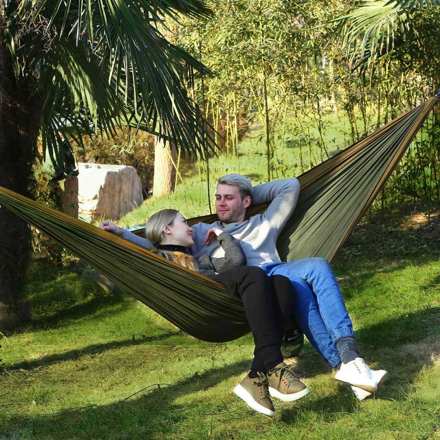 Aprašymas buvo automatiškai išverstas, gali pasitaikyti klaidų. Atsipalaidavimui 2 asmenų hamakas puikiai tinka poilsiui stovyklaujant ar sode. Mėgstantiems keliauti, leistis į keliones į mišką ar kalnus, šis lengvas ir greitai supakuotas hamakas bus puikus kompanionas, nes užima labai mažai vietos ir su juo galėsite pailsėti akimirksniu. Tvirtas ir patvarus. Lengvai valomas ir greitai džiūsta, todėl puikiai tinka kelionėms. Taip pat ilgai išlieka spalva, todėl hamaku galėsite džiaugtis ilgai.Prekės informacija: - Medžiaga: 210T nailonas - Gaminio matmenys: 300 x 200 cm (P x P) - Pakuotės matmenys: 20 x 12 cm (A x Ø) - Svoris: 0,8 kg Pristatymo komplektas: - 1 x hamakas - 2 x patvarūs dirželiai - 2 x užsegami kabliukai SONGMICS Pastabos: - Vaikai turi žaisti prižiūrimi suaugusiųjų ir visada atkreipti dėmesį į saugumą. - Prieš naudodami, įsitikinkite, kad po hamaku nėra aštrių daiktų. - Nuotraukose esančios spalvos gali skirtis nuo tikrosios spalvos, priklausomai nuo monitoriaus nustatymų. - Prieš kiekvieną naudojimą atidžiai patikrinkite hamako ir tvirtinimo dirželių būklę.
