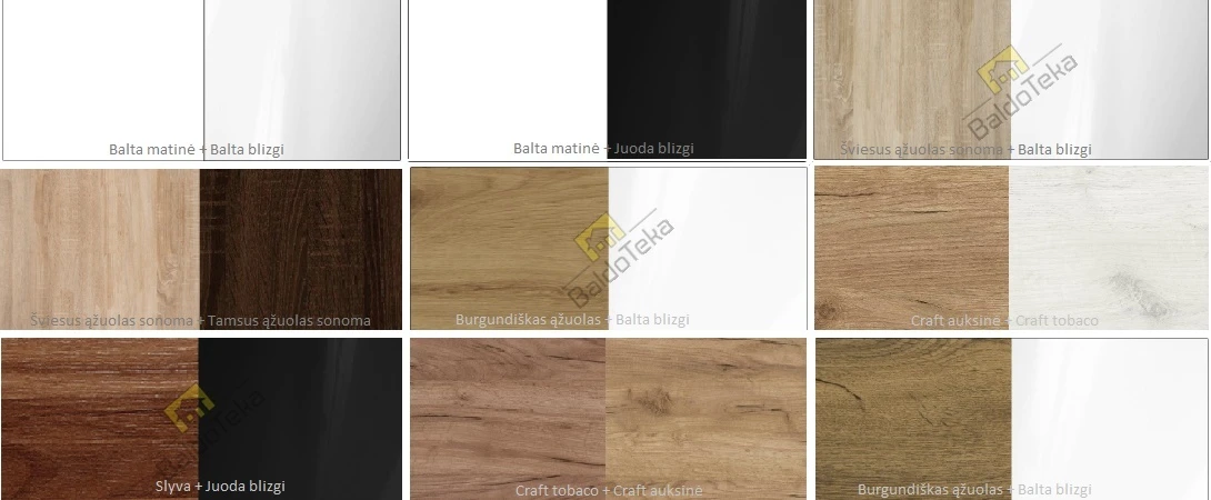 – Šviesus ąžuolas sonoma + Tamsus ąžuolas sonoma;