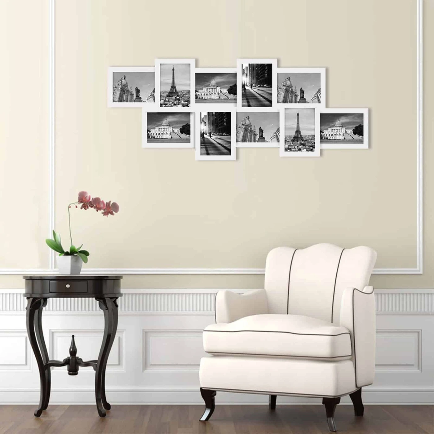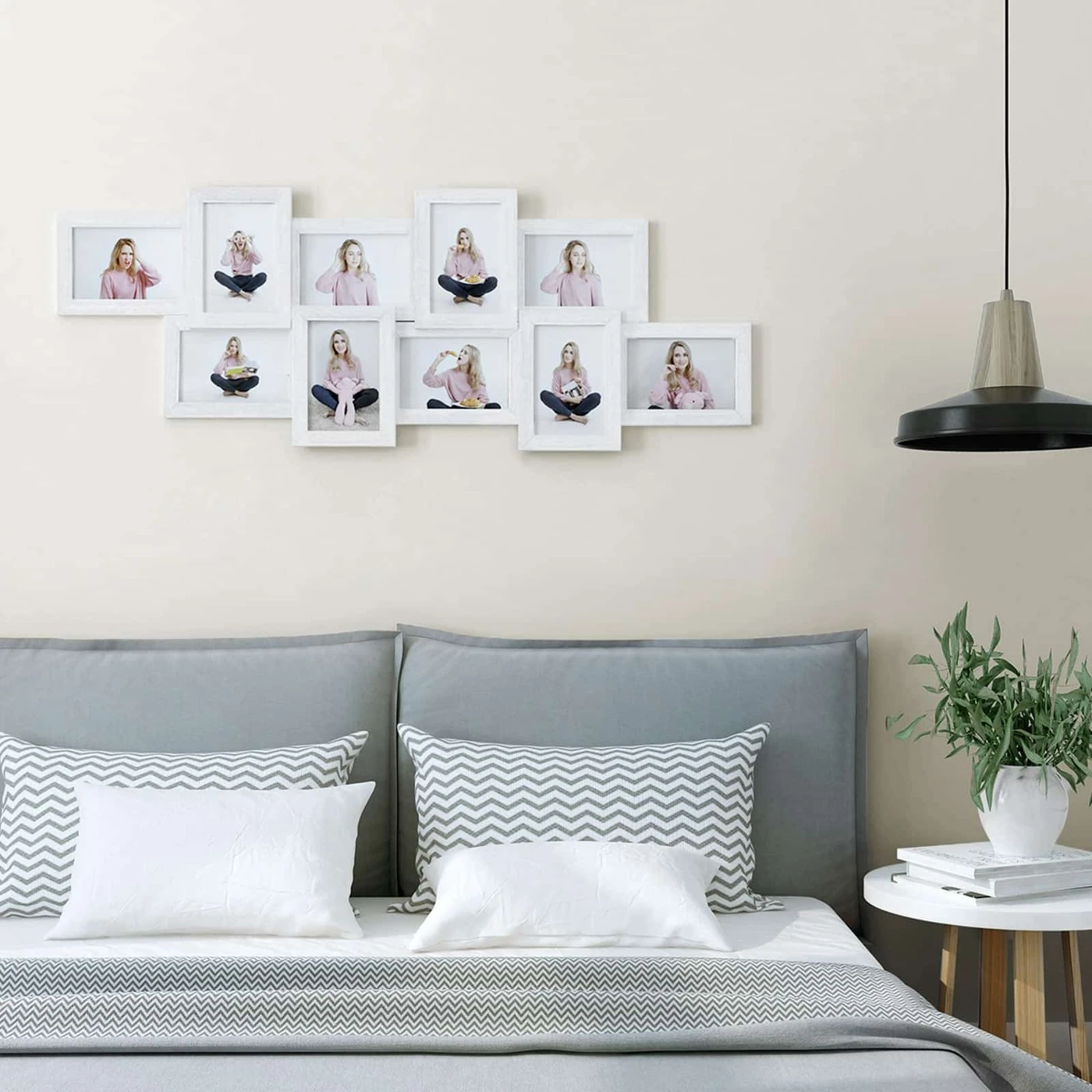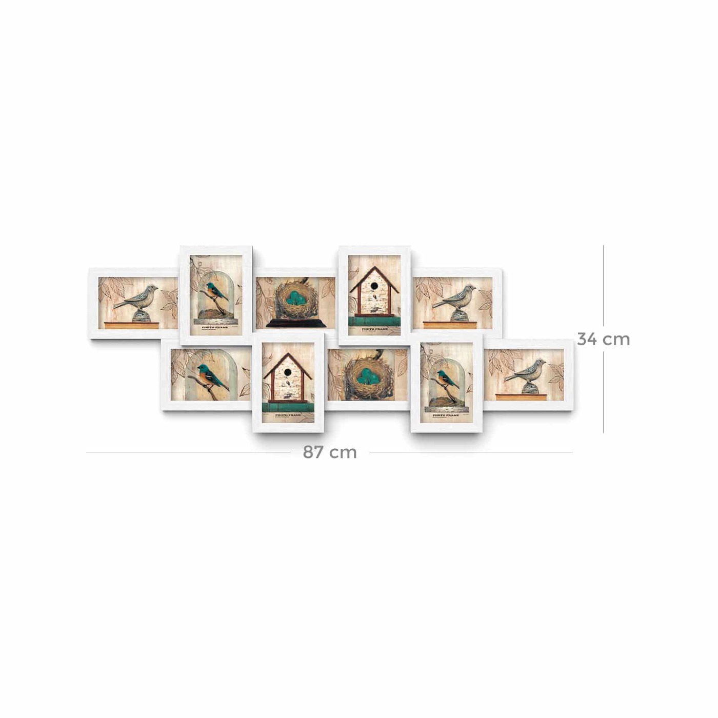 Aprašymas buvo automatiškai išverstas, gali pasitaikyti klaidų.Užpildykite šį rėmelį mėgstamomis nuotraukomis ir pakabinkite. Medienos raštų nuotraukų rėmelis papuoš jūsų sieną ir visada primins gražias akimirkas.Išsami informacija apie gaminį: - Matmenys: 87 x 34 cm - MDF plokštės storis: 1,2 cm - Rėmo Plotis cm: 1,8 cm - PS paveikslėlio viršelio storis: 1 mm - Spalva: balta; juodas Pristatymo komplektas: - 1 x paveikslo rėmelis 10 nuotraukų - 1 x instrukcija - 1 x montavimo krepšys SONGMICS Pastabos: - Prieš naudodami nuimkite apsauginę plėvelę iš abiejų PS paveikslėlių dangtelių pusių. - Montuoti negalima ant grubaus paviršiaus, kad būtų išvengta įbrėžimų. - Foto rėmelis susideda iš kelių dalių, būtinas savarankiškas surinkimas.