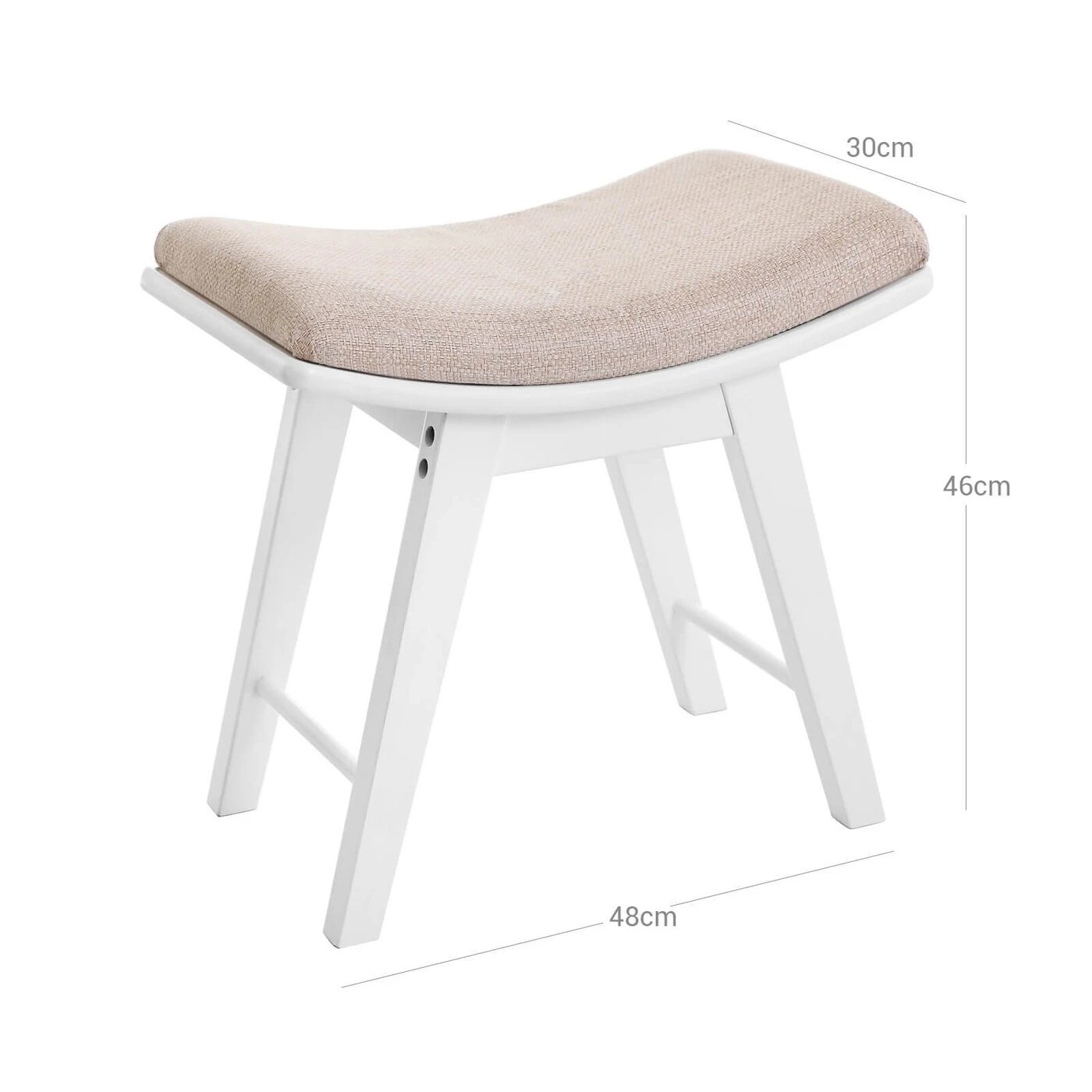 Aprašymas buvo automatiškai išverstas, gali pasitaikyti klaidų.Produkto aprašymas: geras tualetinis staliukas nusipelno kokybiškos taburetės. Naujo dizaino Songmics taburetė leis maloniai praleisti laiką darydami makiažą. Šis paprastos išvaizdos tualetinis staliukas suteiks jūsų kambariui šiuolaikiškumo. Stora, minkšta sėdynės pagalvė garantuoja aukštą sėdėjimo komfortą. Komplekte yra surinkimo šešiakampis raktas, kuris puikiai tarnauja ir kaip batų lentyna koridoriuje.Išsami informacija apie gaminį: - Spalva: balta - Medžiaga: guminė mediena, MDF plokštė - Matmenys: 48 x 46 x 30 cm (P x A x G) - Svoris: 5 kg Pristatymo komplektas: - 1 x guminės medžio kojelės - 1 x taburetė rėmas - 1 x Instrukcija (DE, EN, IT, FR, ES) - 1 x tvirtinimo maišelis Pastabos: - Tualetinis staliukas turi būti apsaugotas nuo tiesioginių saulės spindulių. - Apskritai venkite bet kokio stalo kontakto su smailiais daiktais ir agresyviais tirpikliais, kad apsaugotumėte jį nuo įbrėžimų ar pažeidimų.