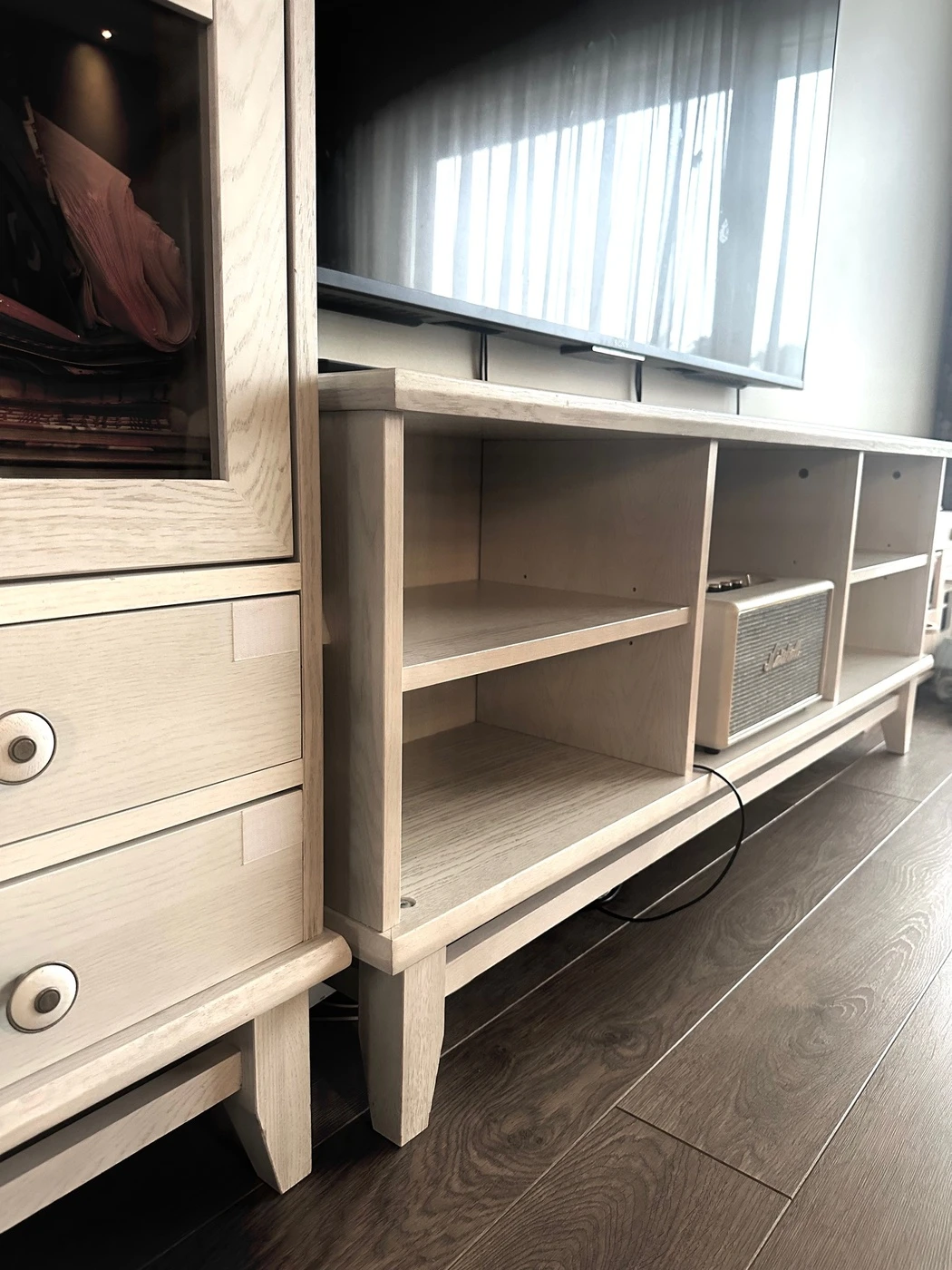 Tvirtas TV staliukas ir indauja – puiki kainaIndauja ir TV staliukas – 450 Eur, vienas stalčius reikia taisytiIndauja su stalčiumi ir TV staliukas – puikus komplektas