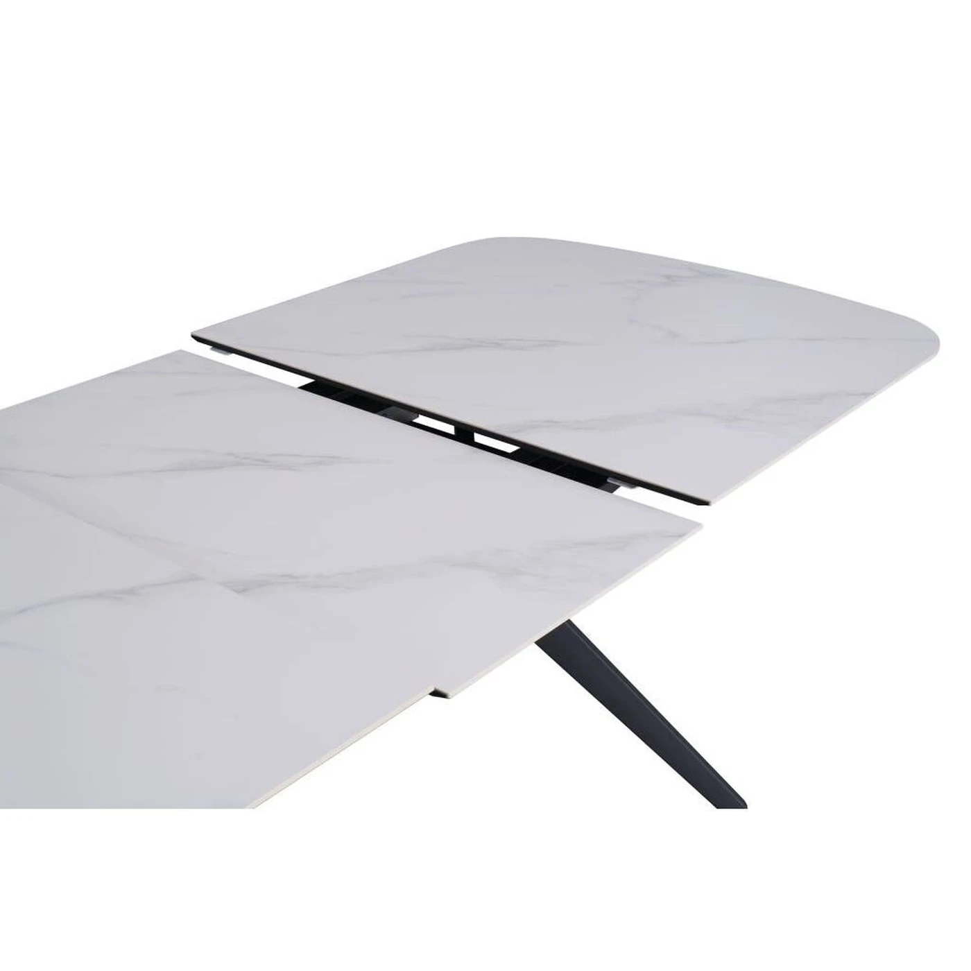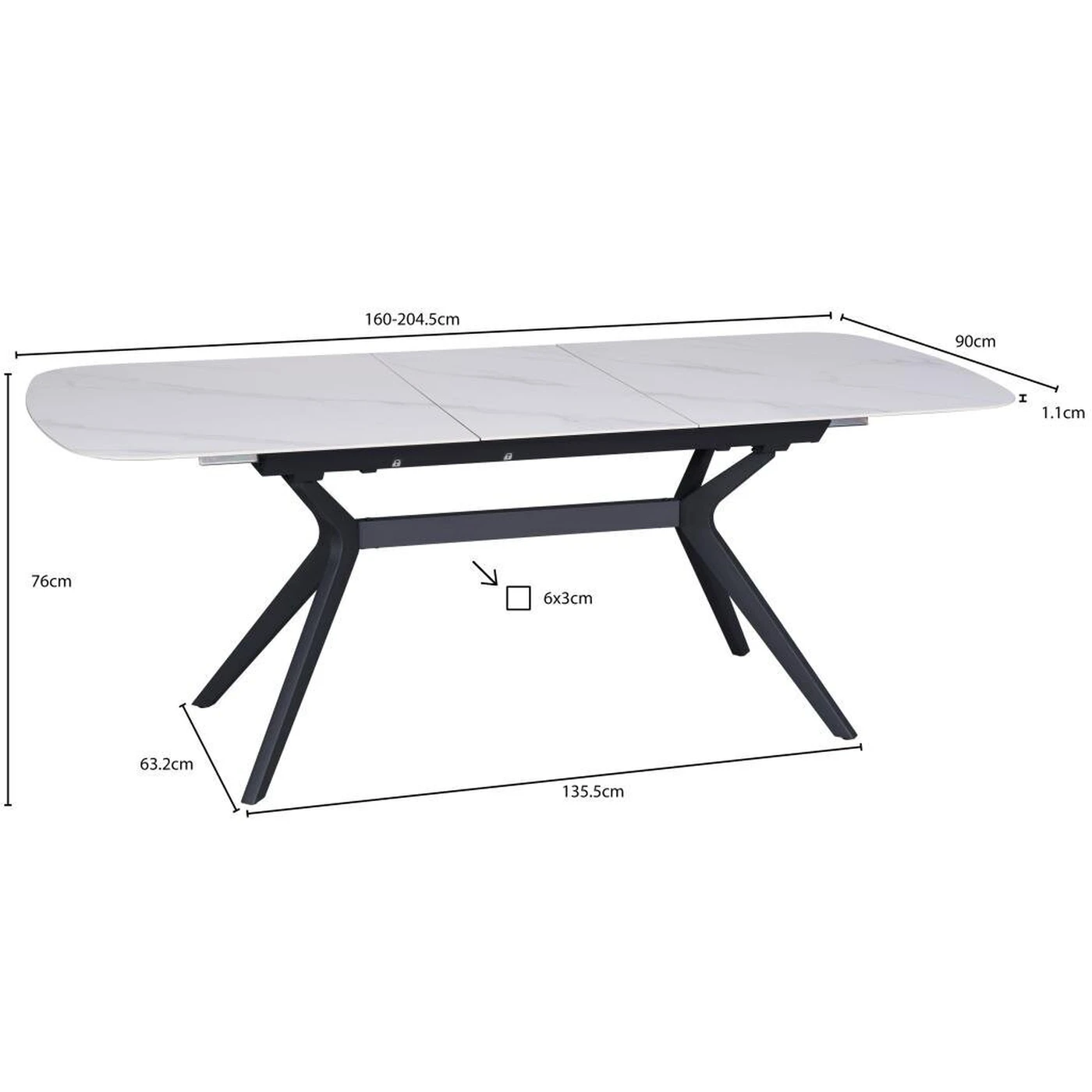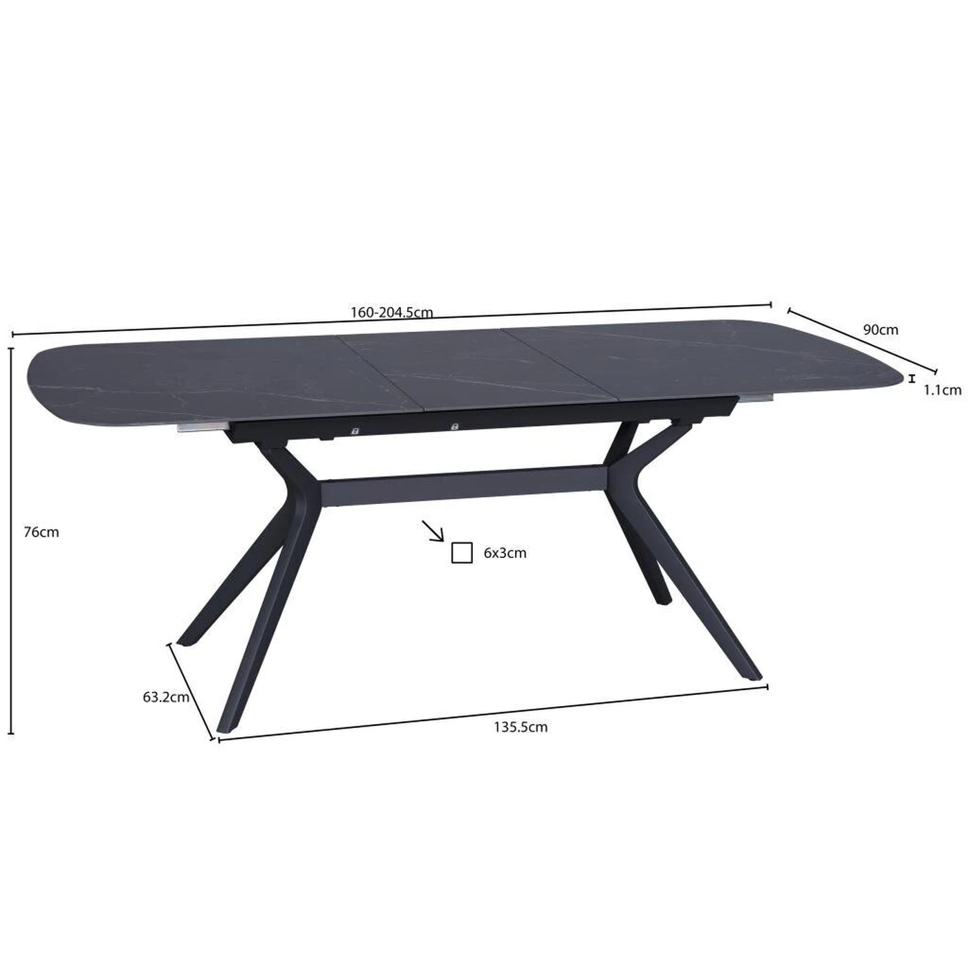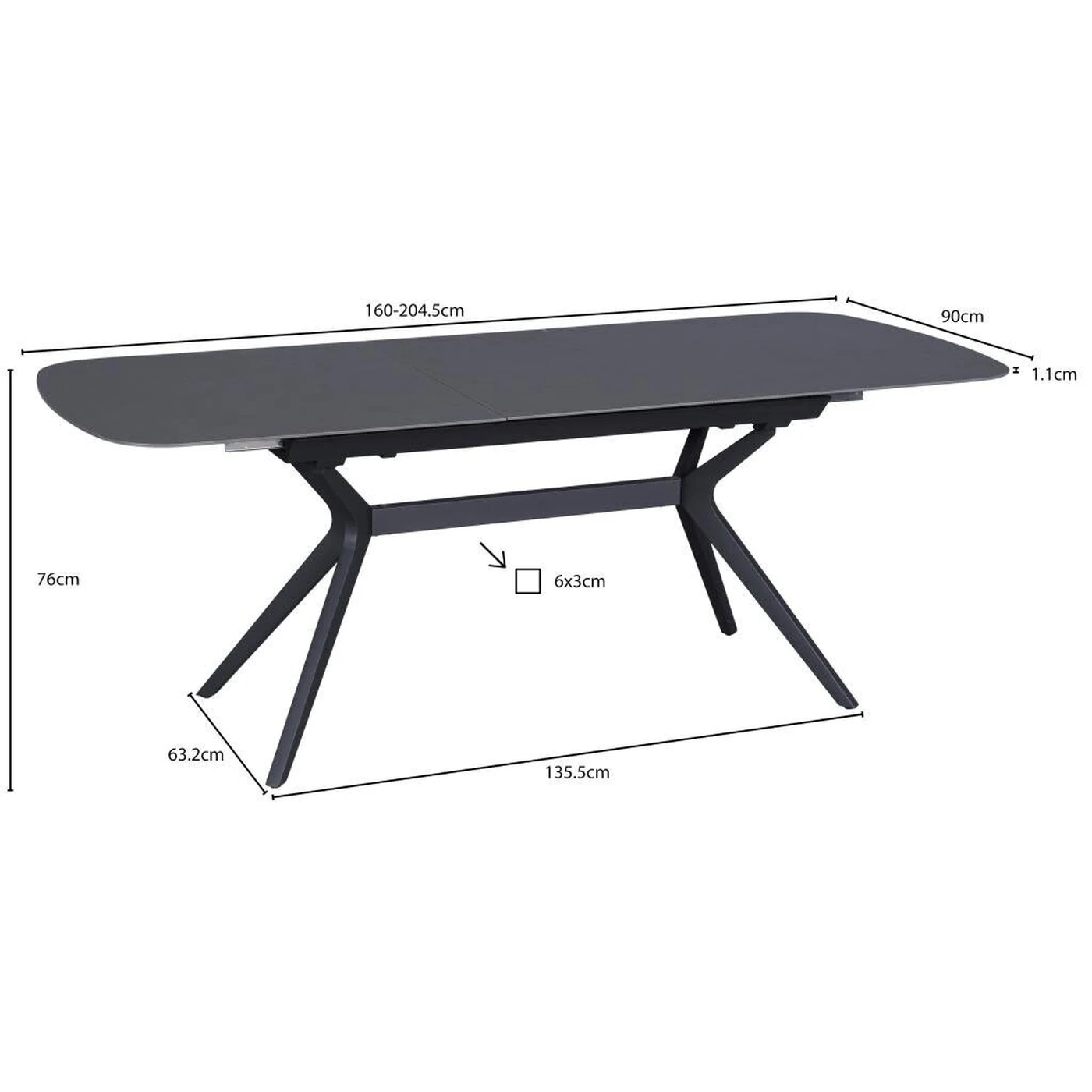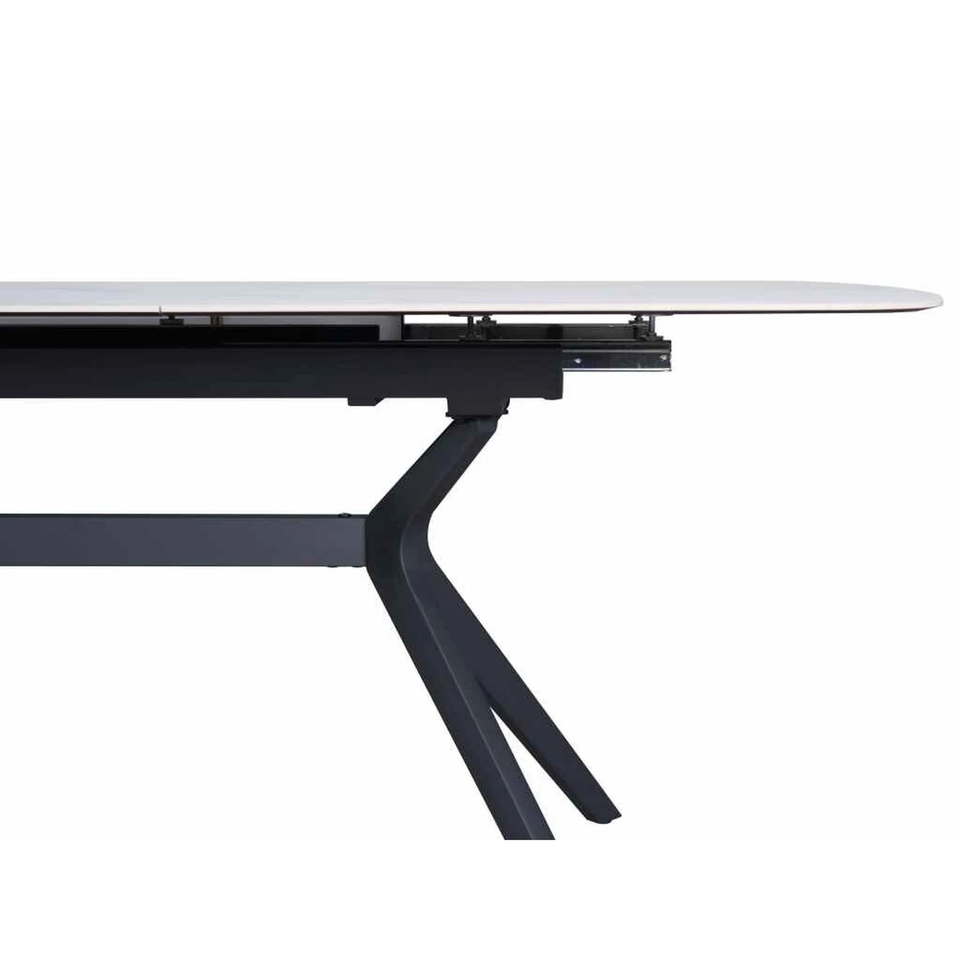 Gamyboje naudojama 11 mm storio keramika užtikrina dizaino išraiškingumą ir tuo pačiu stalviršį daro itin patikimą. Svarbus šio modelio privalumas – patvarus ir elegantiškas juodo plieno rėmas, garantuojantis ilgaamžiškumą ir saugumą. Be to, jį papildo neįprastos lenktos kojos, kurios puikiai dera prie neutralaus stalviršio dekoro ir daro stalo dizainą grakštų bei stilingą.