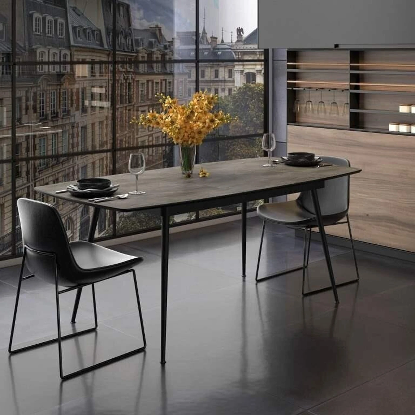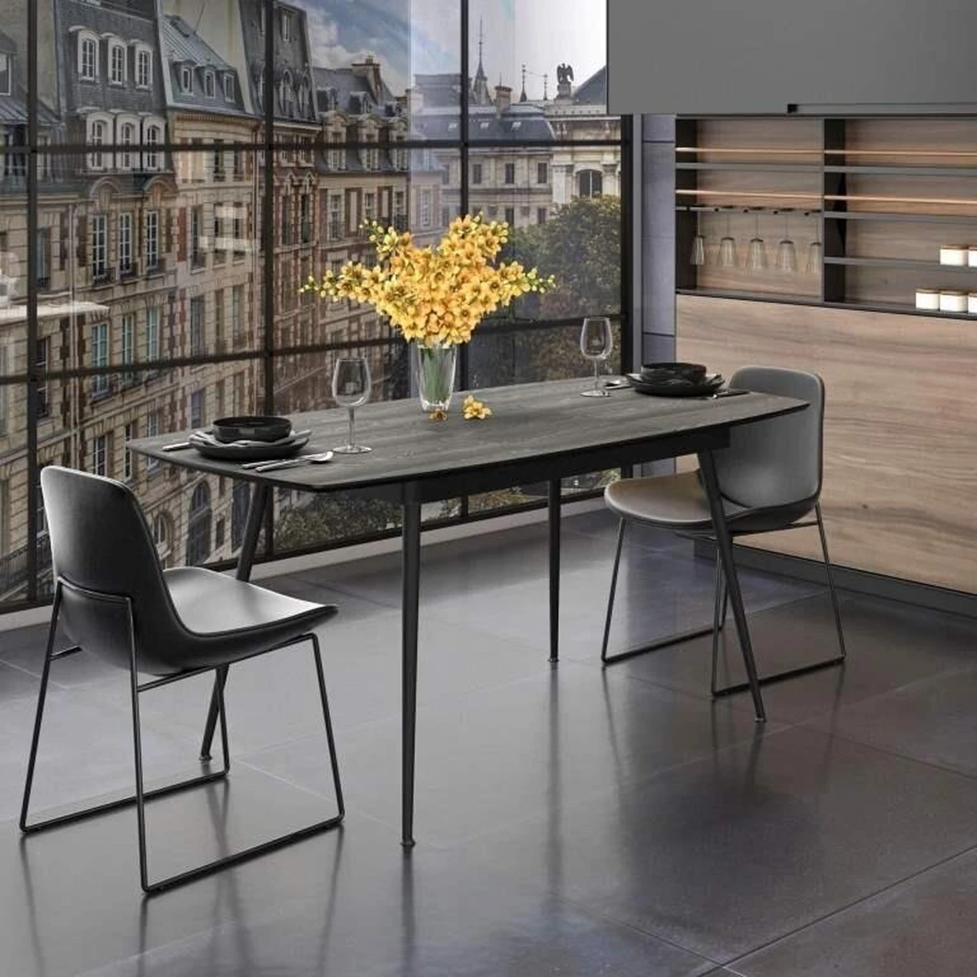 Ištiesiamas valgomojo stalas YENSE-145 puikiai atrodys modernaus stiliaus interjere. Rėmas pagamintas iš juodo plieno, o stalviršis – iš laminato. Plieninės kojos yra įstrižai nuo pagrindo, o tai garantuoja maksimalų stabilumą ant grindų paviršiaus. Šis stalas lengvai derės bet kokio stiliaus interjere.