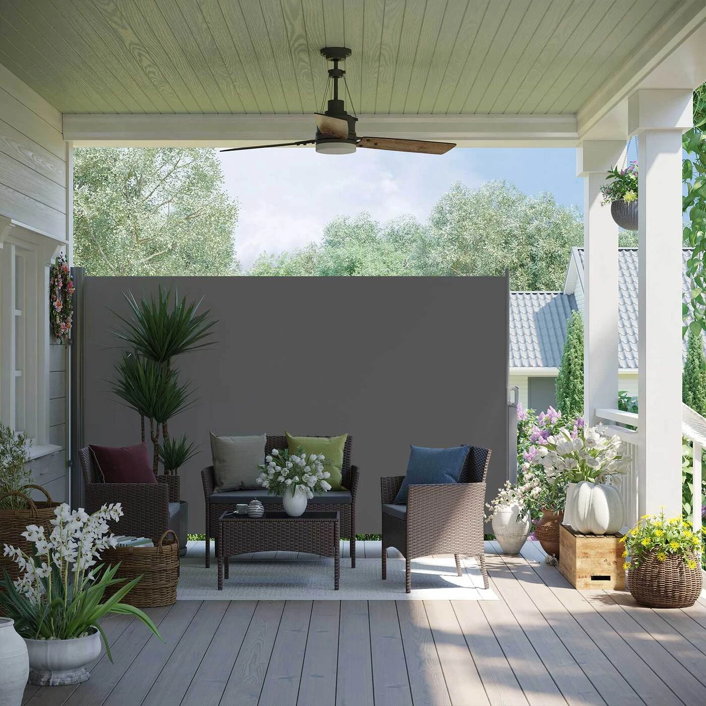 Aprašymas buvo automatiškai išverstas, gali pasitaikyti klaidų.Šis tentas yra puikus pasirinkimas, jei norite apsisaugoti nuo saulės spindulių ir silpno vėjo. Trumpai apie svarbiausius dalykus: - Aliuminio lydinio markizės dėžė yra tvirta ir atspari rūdijimui - Kampinis stulpas užtikrina gerą markizės audinio įtempimą - Didelio tankio markizės audinys (280 g/m²) turi vandenį atstumiančią PU dangą ir gali atlaikyti lietų - Atsukimo funkcija, kad būtų lengviau Ištraukite ir suvyniokite markizės audinį - Uždenkite grindų laikiklį apsauginiu dangteliu, kad jis netrukdytų kasdieniam gyvenimui - Markizę galite naudoti tiek patalpoje, tiek lauke Keli montavimo variantai: - Pritvirtinkite dėžutę prie sienos (≥ 10 cm storio) ir stulpelį ant žemės. Stulpelis gali būti įkištas į grindų laikiklį, kad galėtumėte jį tiesiog ištraukti, kai nenaudojate. - Jei reikia montuoti abi markizės puses ant sienų, rankenai reikia paruošti sieninį laikiklį. Jei dėžutė neturi būti tvirtinama prie sienos, reikalingas stulpelio laikiklis. - Jeigu ant žolės tvirtinamos abi pusės, būtina paruošti tvirtinimo stulpą ir 2 įžeminimo inkarus; jei prie žolės tvirtinamas tik šoninis stulpas, pakanka 1 įžeminimo inkaro.Išsami informacija apie gaminį: - Spalva: Pilka - Medžiaga: Aliuminio lydinys, poliesteris (280 g/m²), PU danga - Matmenys: 1,8 x 3,5 m (A x A) - Svoris: 9,5 kg Pristatymo komplektas: - 1 x šoninis tentas - 1 x priedų paketas – 1 x rankinis (DE,EN,FR,IT,ES)SONGMICS Pastabos:- Gaminys buvo skirtas naudoti tik saulėtomis ar silpnai vėjuotomis dienomis. Pučiant stipriam vėjui ar audrai, nedelsdami atitraukite tentą, kad nesugadintumėte. - Šiam gaminiui valyti naudokite drėgną šluostę.
