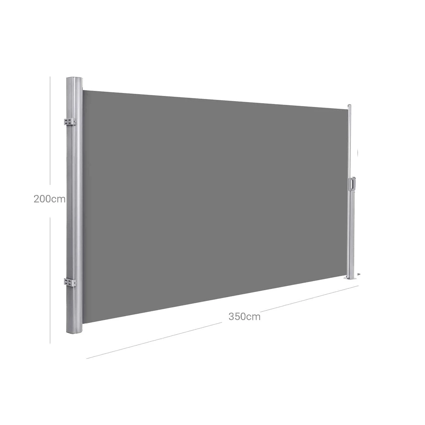 Aprašymas buvo automatiškai išverstas, gali pasitaikyti klaidų.Šis tentas yra puikus pasirinkimas, jei norite apsisaugoti nuo saulės spindulių ir silpno vėjo. Trumpai apie svarbiausius dalykus: - Aliuminio lydinio markizės dėžė yra tvirta ir atspari rūdijimui - Kampinis stulpas užtikrina gerą markizės audinio įtempimą - Didelio tankio markizės audinys (280 g/m²) turi vandenį atstumiančią PU dangą ir gali atlaikyti lietų - Atsukimo funkcija, kad būtų lengviau Ištraukite ir suvyniokite markizės audinį - Uždenkite grindų laikiklį apsauginiu dangteliu, kad jis netrukdytų kasdieniam gyvenimui - Markizę galite naudoti tiek patalpoje, tiek lauke Keli montavimo variantai: - Pritvirtinkite dėžutę prie sienos (≥ 10 cm storio) ir stulpelį ant žemės. Stulpelis gali būti įkištas į grindų laikiklį, kad galėtumėte jį tiesiog ištraukti, kai nenaudojate. - Jei reikia montuoti abi markizės puses ant sienų, rankenai reikia paruošti sieninį laikiklį. Jei dėžutė neturi būti tvirtinama prie sienos, reikalingas stulpelio laikiklis. - Jeigu ant žolės tvirtinamos abi pusės, būtina paruošti tvirtinimo stulpą ir 2 įžeminimo inkarus; jei prie žolės tvirtinamas tik šoninis stulpas, pakanka 1 įžeminimo inkaro.Išsami informacija apie gaminį: - Spalva: Pilka - Medžiaga: Aliuminio lydinys, poliesteris (280 g/m²), PU danga - Matmenys: 2 x 3,5 m (A x L) - Svoris: 10 kg Pristatymo komplektas: - 1 x šoninis tentas - 1 x priedų paketas – 1 x vadovas (DE, EN, FR, IT, ES) SONGMICS Pastabos:- Gaminys buvo skirtas naudoti tik saulėtomis ar silpnai vėjuotomis dienomis. Pučiant stipriam vėjui ar audrai, nedelsdami atitraukite tentą, kad nesugadintumėte. - Šiam gaminiui valyti naudokite drėgną šluostę.