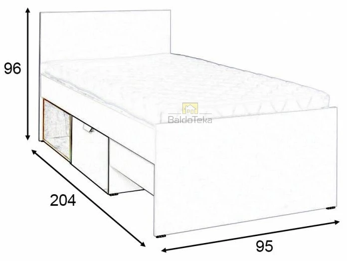 | Pritaikyta čiužiniui | 900 x 2000 mm |