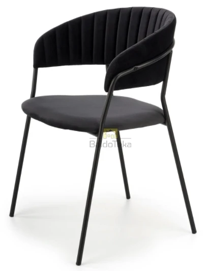 Madinga juoda veliūrinė kėdė su plieniniu karkasu