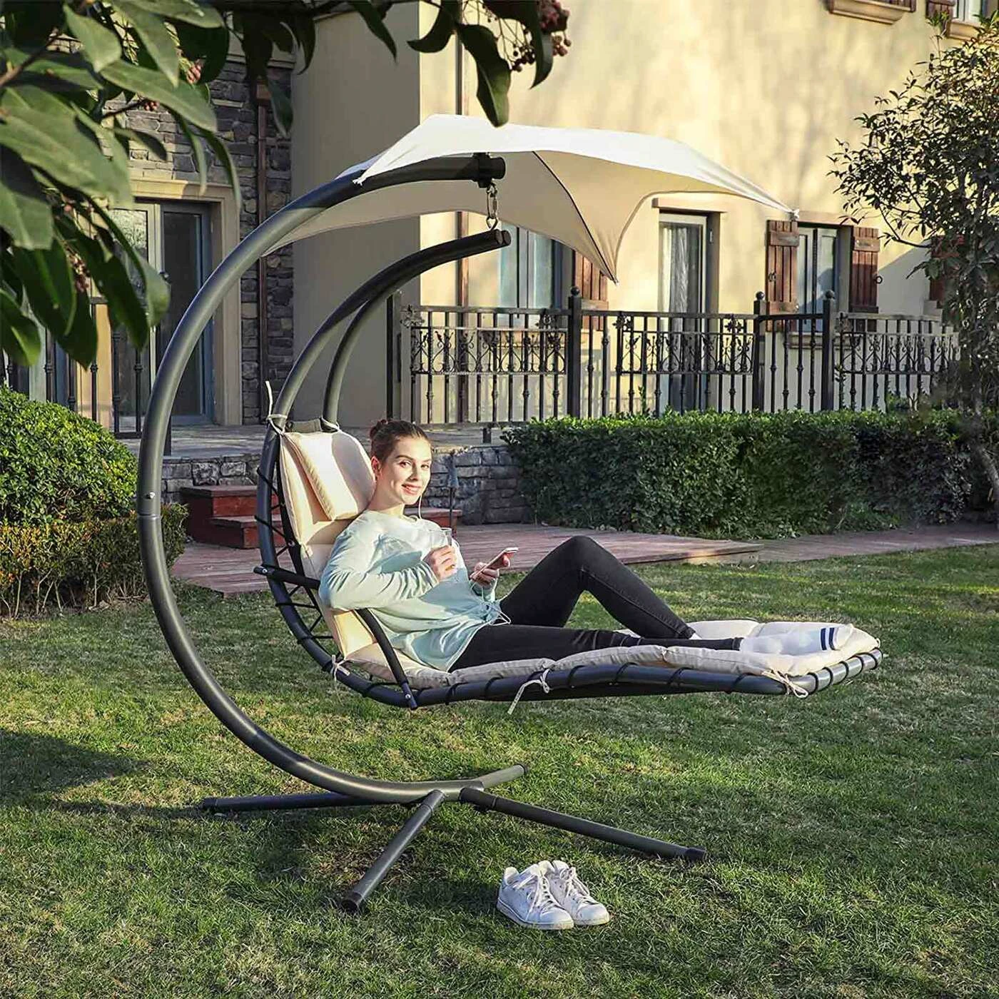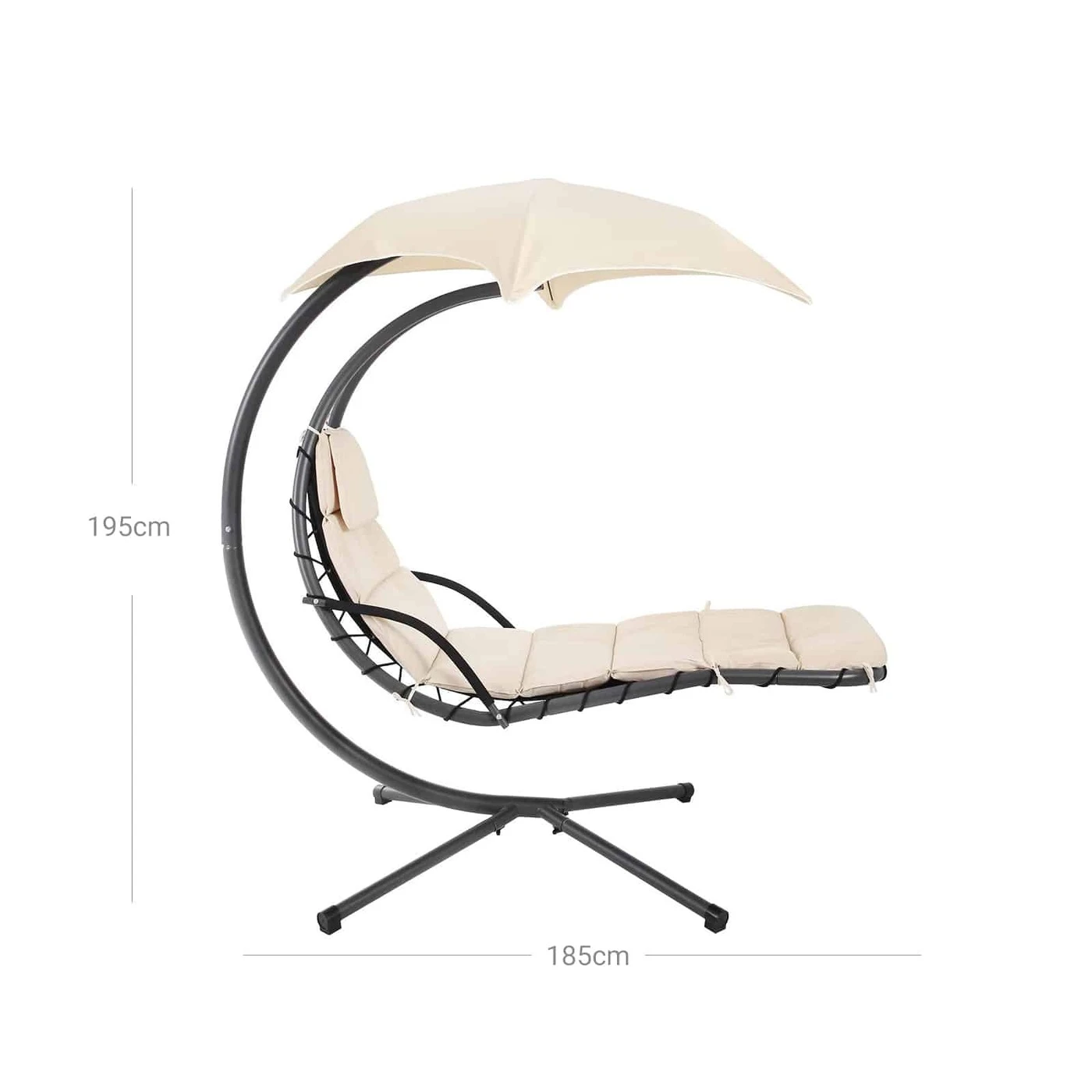 Aprašymas buvo automatiškai išverstas, gali pasitaikyti klaidų.Atraskite savo vidinį tinginį. Saulė leidžiasi, jūsų sode dūzgia paukščiai, jūs gulite ant šio ergonomiško dizaino pakabinamo gulto, prisiglaudę prie storos pagalvės viršaus ir esate visiškai ramus bei atsipalaidavęs. Koks nuostabus vakaras! Mėgaukitės vasara be saulės nudegimo Dėl integruoto skėčio, gultas suteikia daug šešėlio. Tačiau jei saulė šviečia ne per stipriai, o vasarą norėtumėte pradėti šviesiai įdegę, galite lengvai nuimti stogelį nuo saulės. Gaminio detalės: Spalva: smėlio spalvos Medžiaga: sintetinis pluoštas, geležis, poliesteris, užpildas iš PP plastiko (polipropilenas)Dydis : 185 x 108 x 195 cm (I x P x A) Svoris: 38 kg Maks. statinė apkrova: 150 kgPristatymo komplektacija: 1 x pakabinamas gultas su rėmu ir pagalvėle 1 x instrukcija (DE, EN, FR, IT, ES) SONGMICS Pastabos: Saugokite šį gaminį nuo lietaus Maksimali šio gaminio statinė apkrova yra 150 kg. Neviršykite šio maksimalaus svorio. Prieš naudodami visada patikrinkite pakabinamo gulto stabilumą. Vaikams leidžiama naudoti šį gaminį tik prižiūrint suaugusiems. Šis gaminys tiekiamas 2 pakuotėse. Paprastai jie pasieks jus tuo pačiu metu. Tačiau jei iš pradžių turėtumėte gauti tik vieną paketą, prašome apsišarvuoti kantrybe. Antrasis pristatymas paprastai atliekamas nedelsiant.