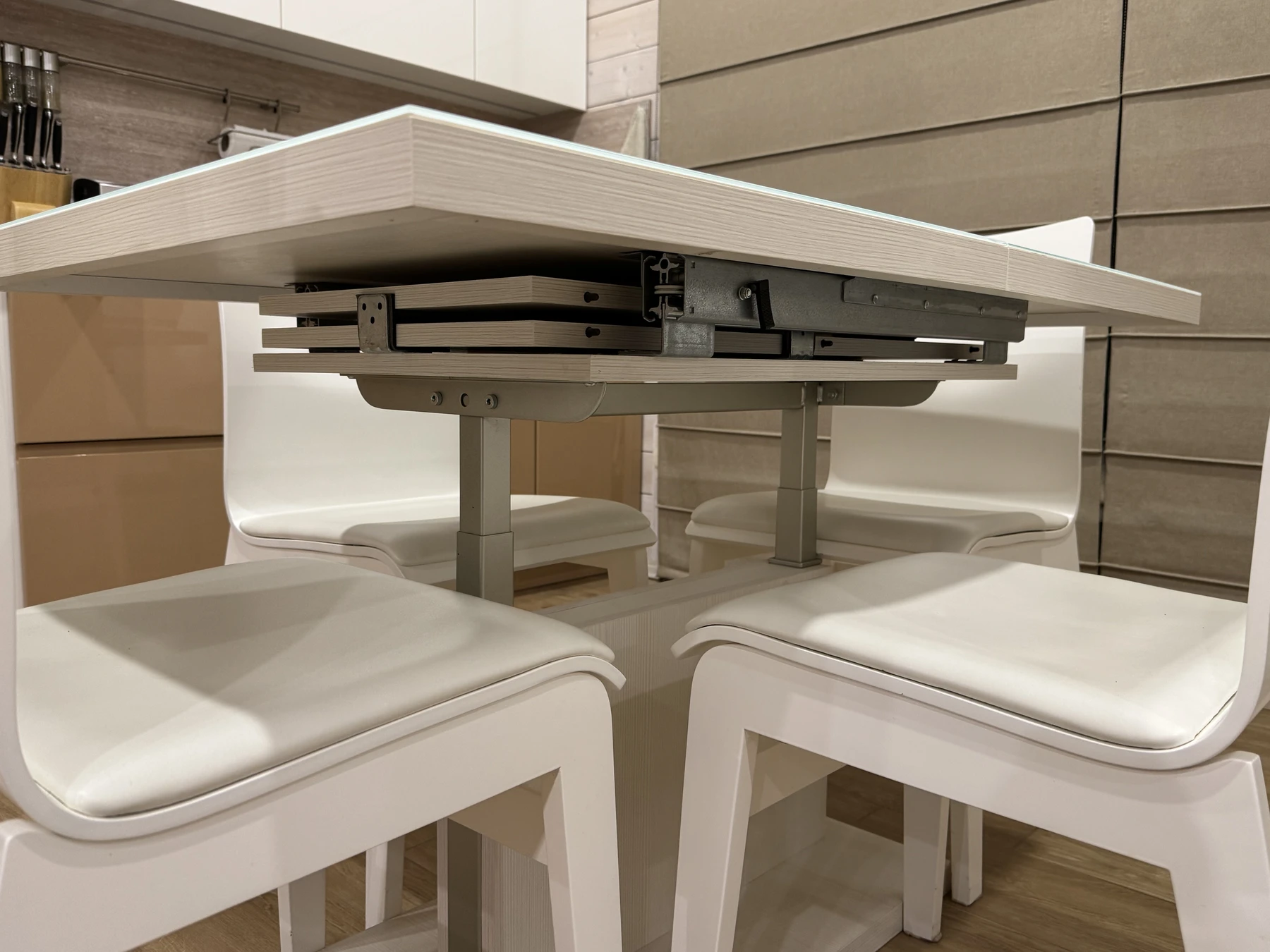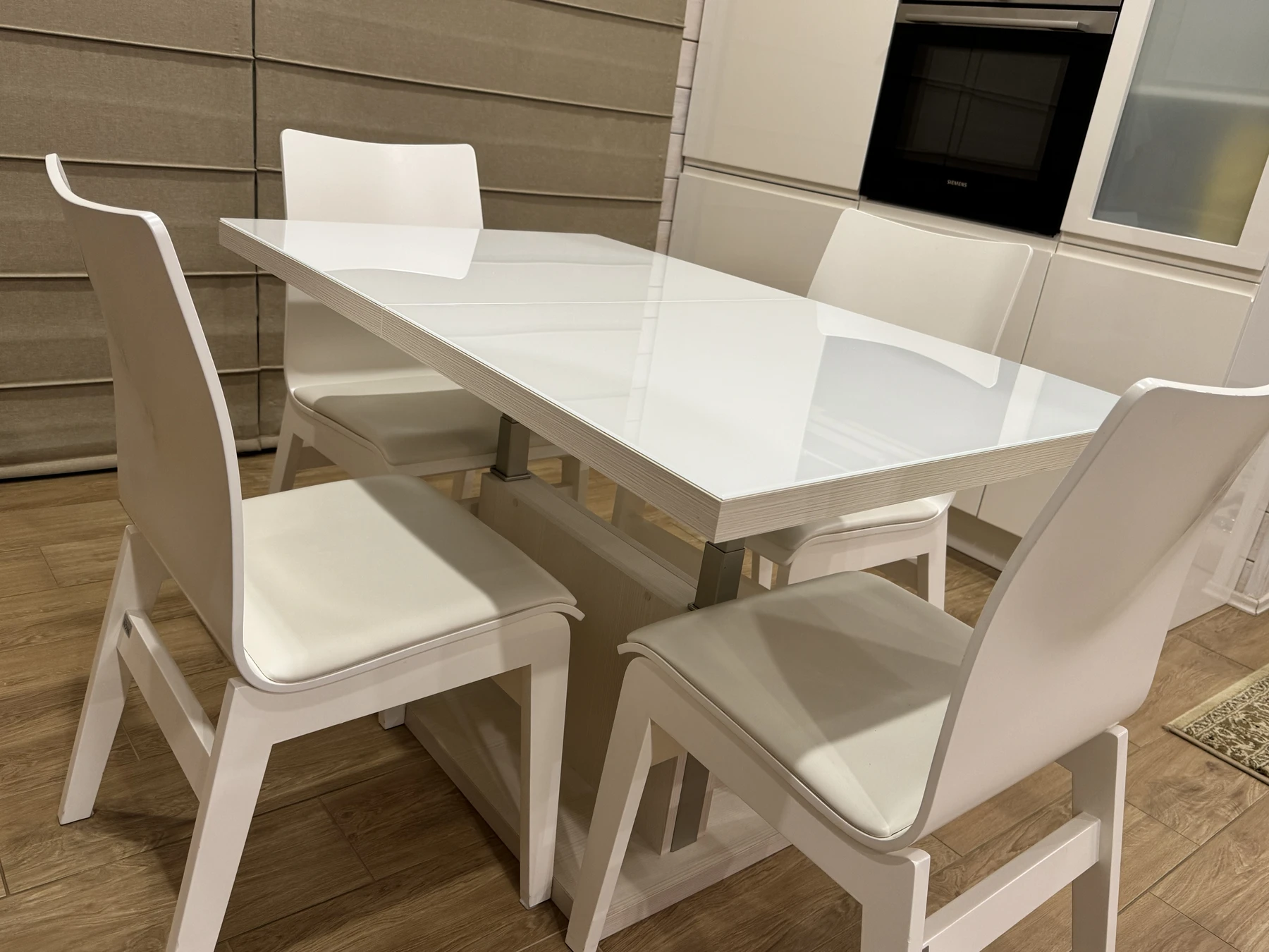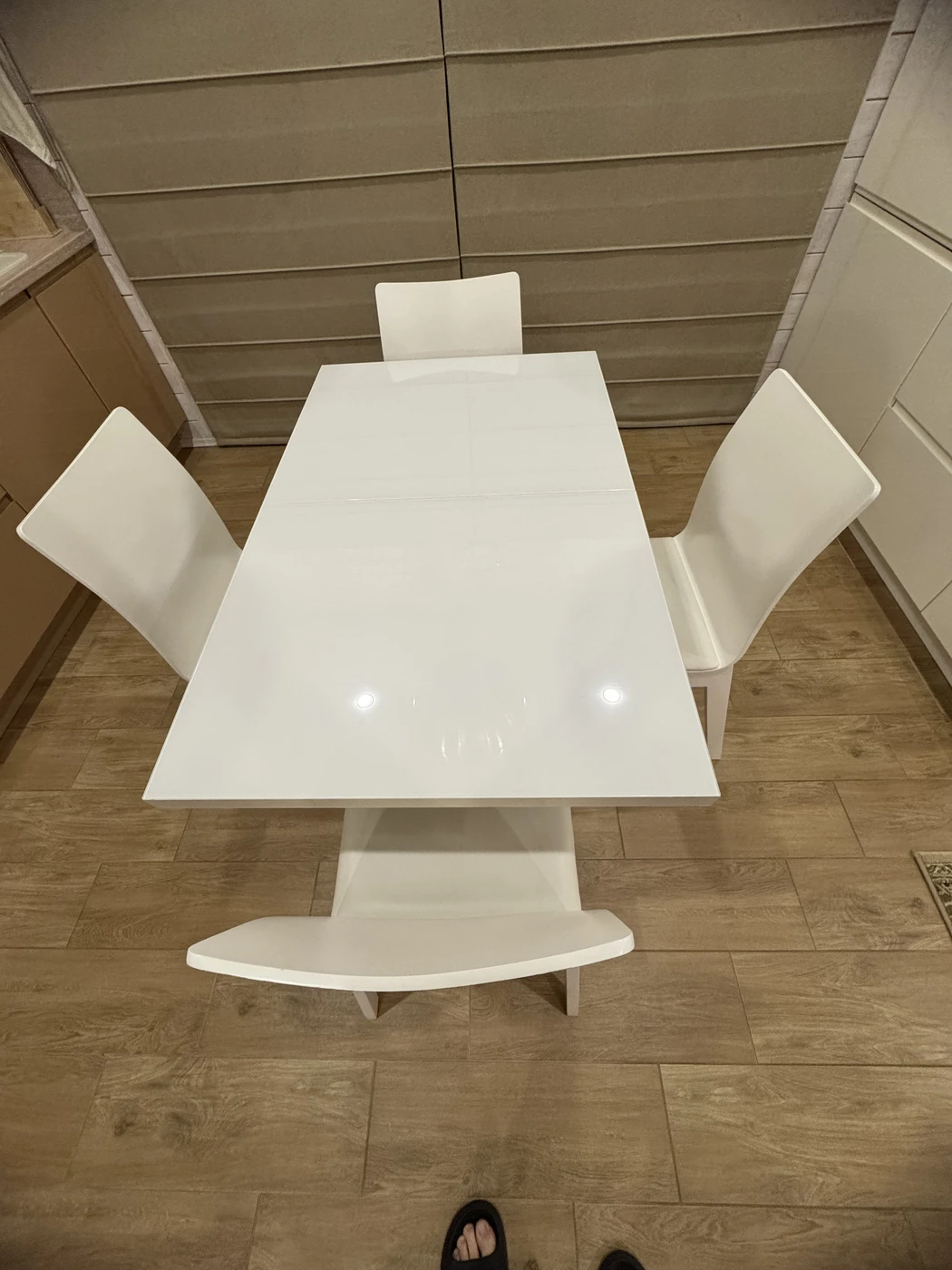 Labai mažai naudotas valgomojo stalas 4in1 prailginamas stalas gali būti kai žurnalinis – rinkitės vieną iš trijų dydžių ir galima reguliuoti aukšti, juos keiskite pagal poreikį. Kompaktiškas kasdienei – puikiai tinka pusryčiams, darbui ar kavos pertraukėlei. Pridėjus vieną ar dvi papildomas plokštes – turėsite daugiau vietos pietums. Dvi papildomos plokštės ir Jūsų stalas paruoštas vakarienėms su šeima ar susibūrimams su draugais. Kompaktiškas ir funkcionalus – neprailgintas stalas užima nedaug vietos, todėl tinka mažesnėms erdvėms, prireikus jis gali būti patogiai pritaikytas ir didesniam svečių skaičiui. Komplekte 4 medines kėdes. Kaina ne galutine, galima derėtis. ;-) Kėdes ar stala galima pirkti ir atskirai. aukštis geruliojamas nuo 58 iki 77 cm plotis 75 cm ilgis 120/160/200 cm