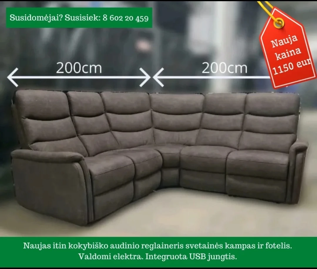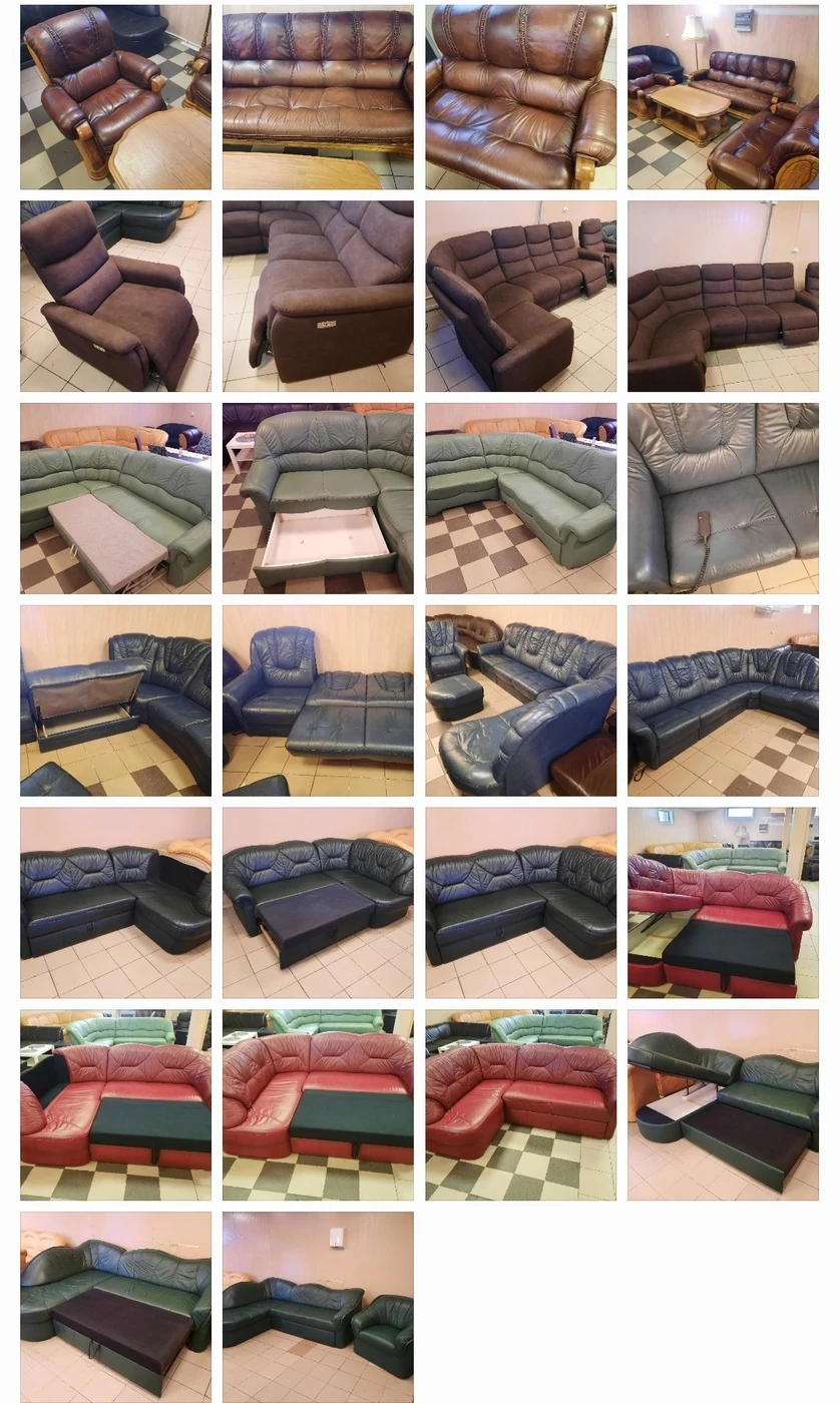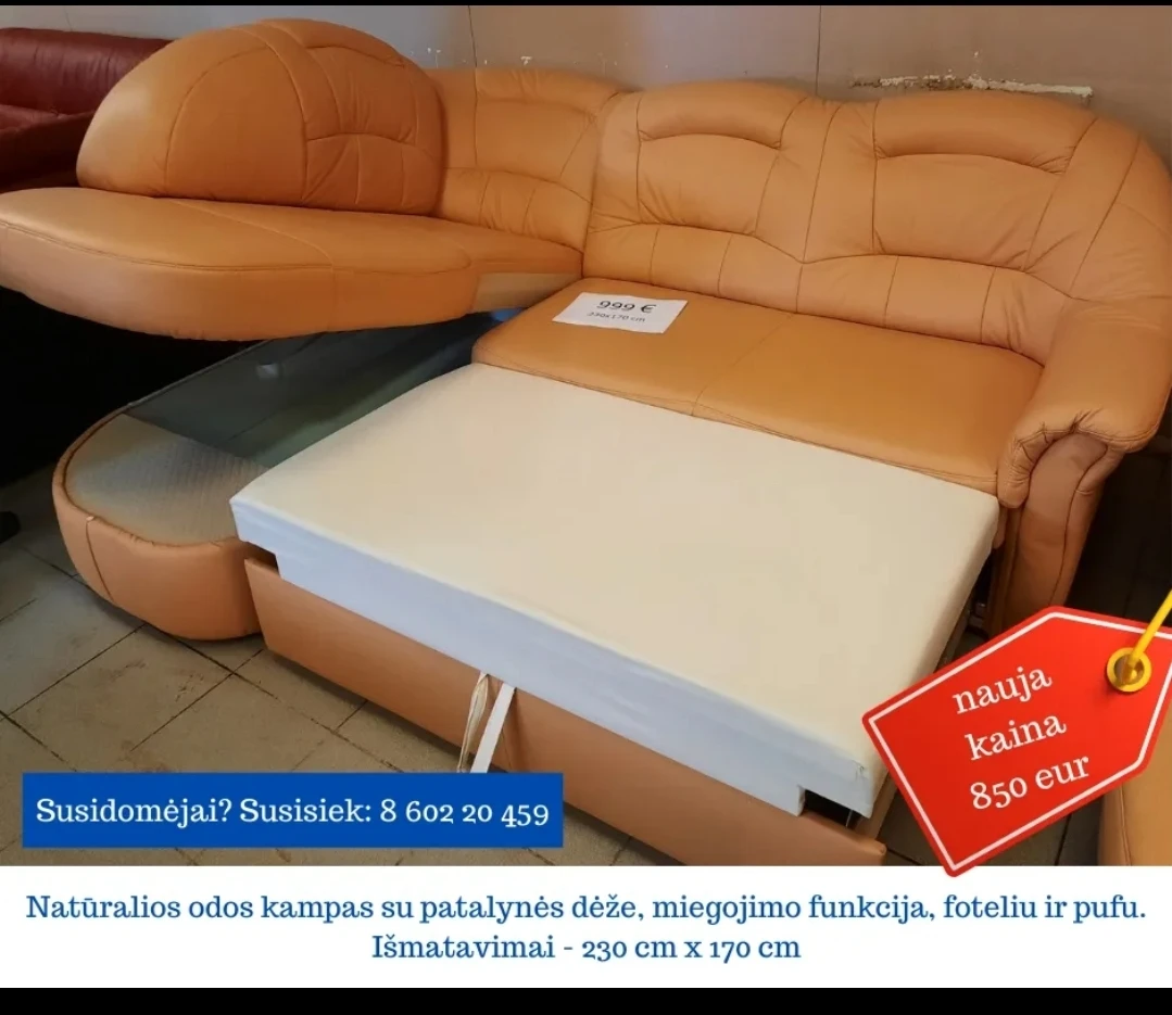 Kampai su miegamom dalim,patalynes dezem,pufais ir foteliais. Komplektai 3+2+1. Reglainer kampai.