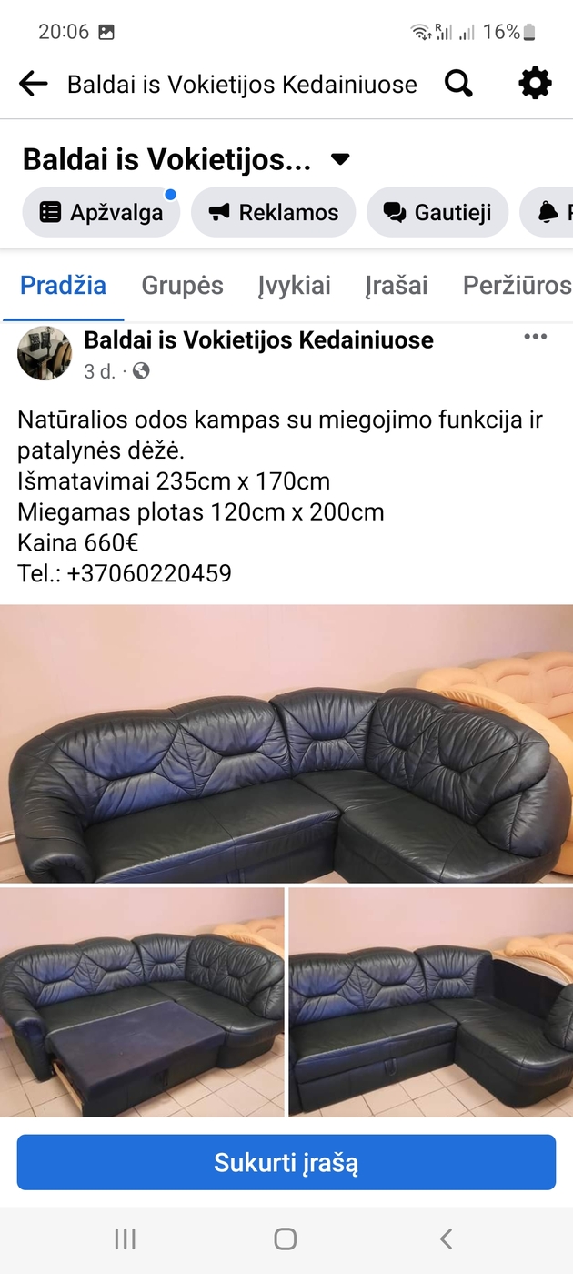 Arba facebook : Baldai iš Vokietijos Kedainiuose