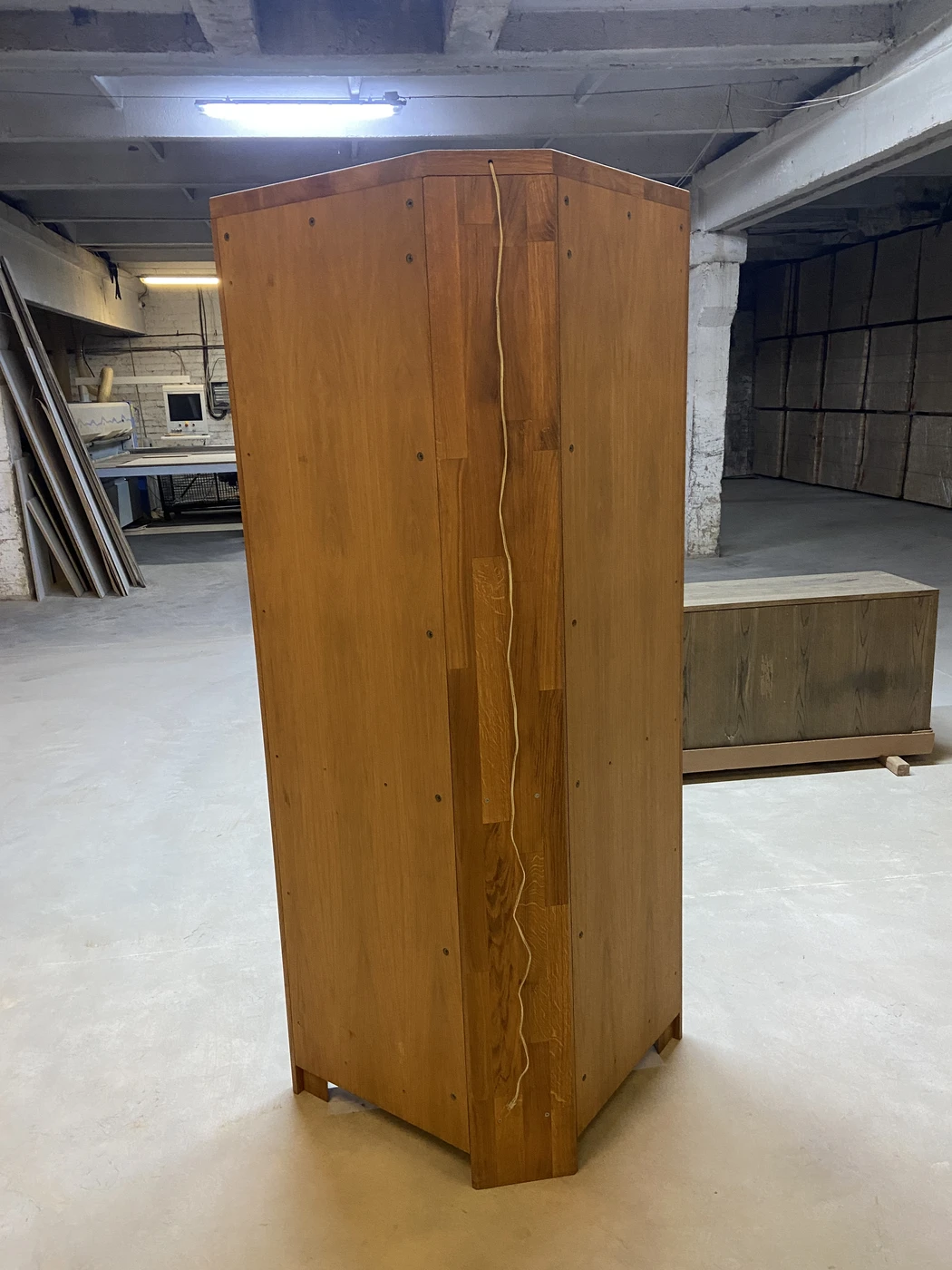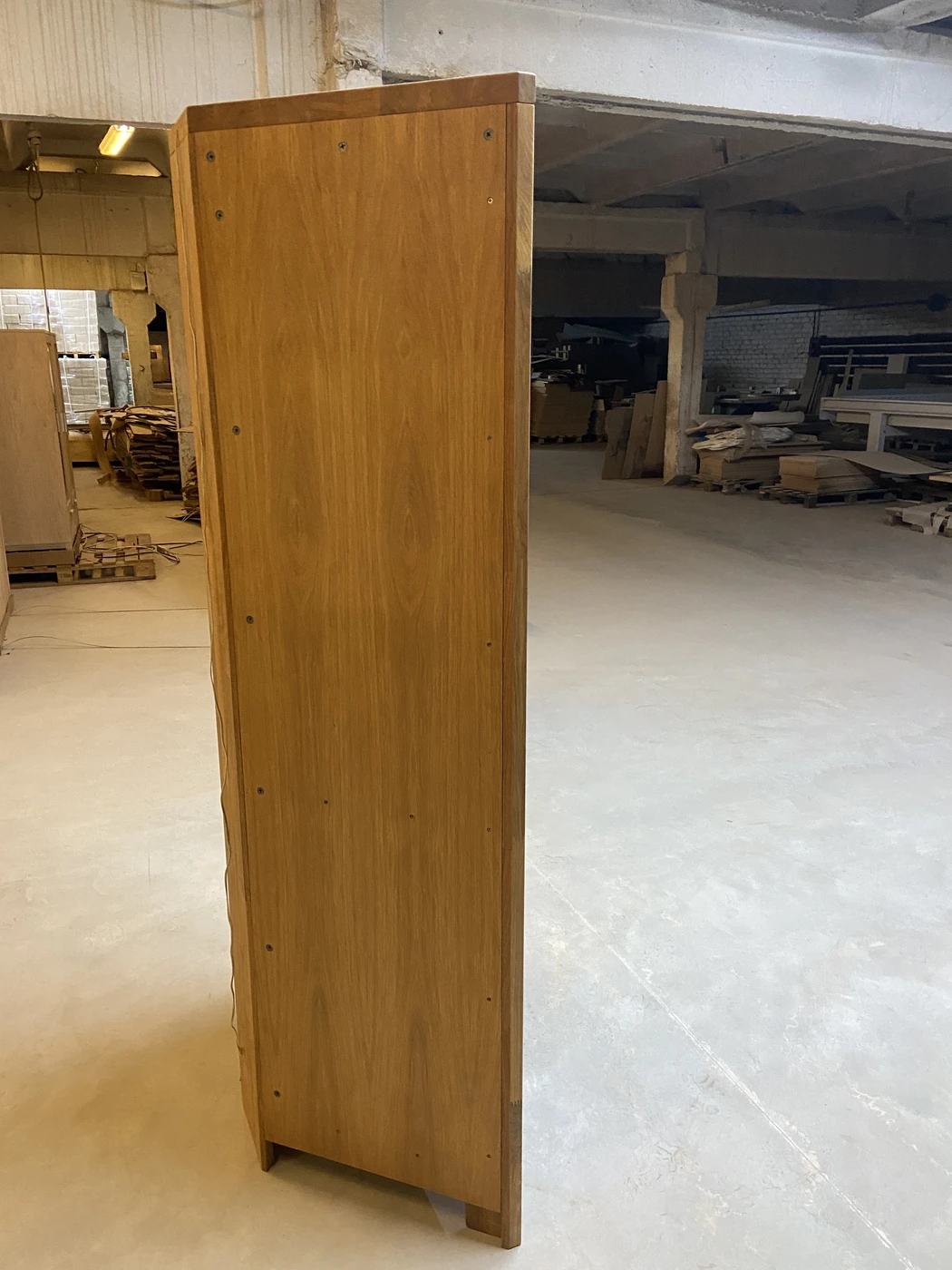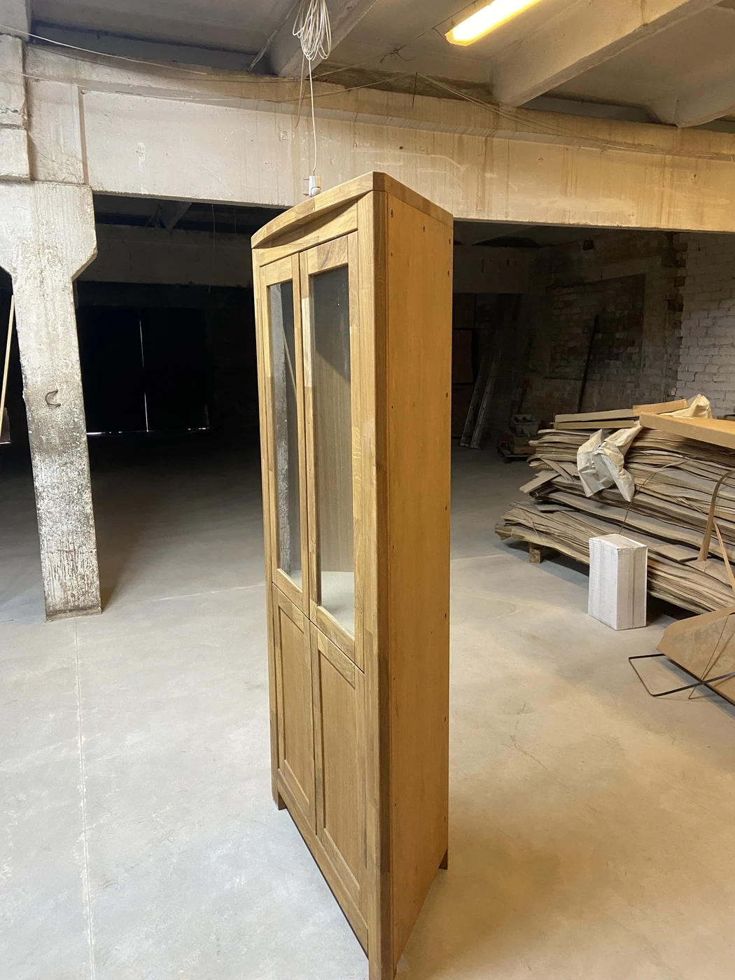 Kampinė indauja OMEGA yra trikampės prizmės formos, puikiai tinkanti skandinaviškam namų dizainui. Baldas pagamintas iš ąžuolo medžio masyvo ir faneruotės. Vitrinos viduje esti LED lempos.