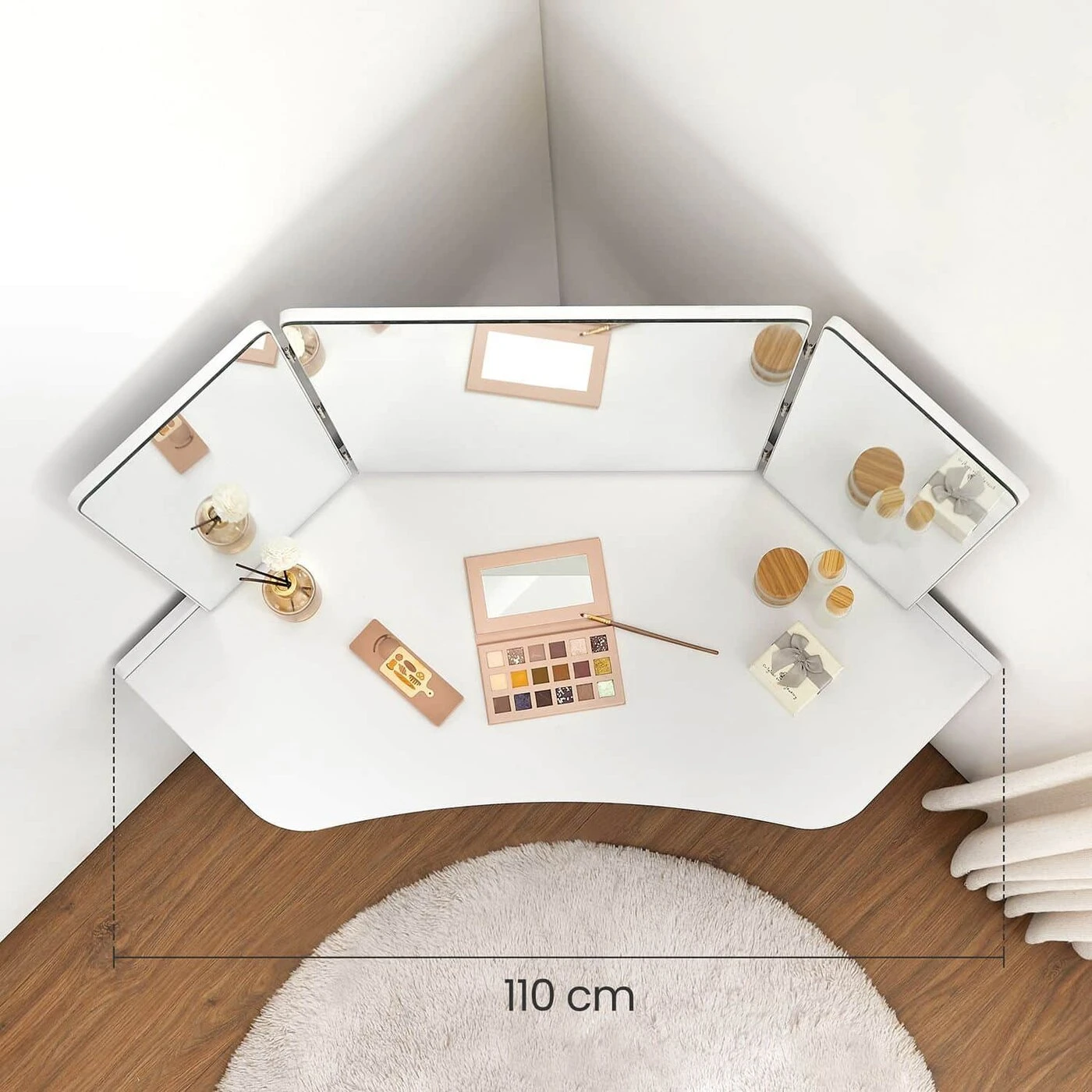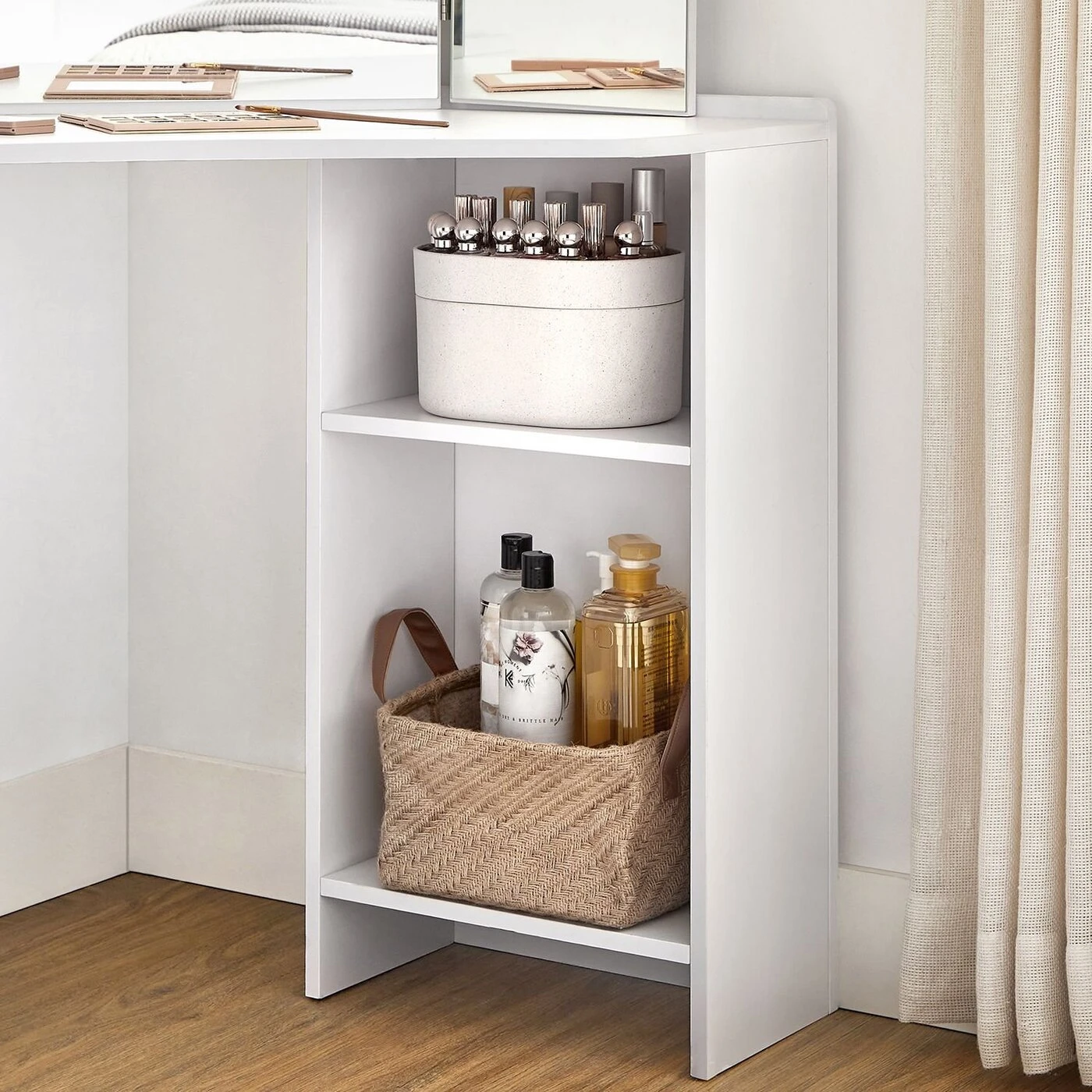 Aprašymas buvo automatiškai išverstas, gali pasitaikyti klaidų.Prekės informacija: - Spalva: balta - Medžiaga: medžio drožlių plokštė, melamino danga - Dydis: 110 x 54 x 140 cm (P x P x A) - Svoris: 37,5 kg - Maksimali statinė paviršiaus apkrova: 27 kgPristatymo komplektas:- 1 x tualetinis staliukas- 1 x priedų paketas- 2 x apsauga nuo apvirtimo- 1 x instrukcijaVASAGLE Pastabos:- Saugumo sumetimais vaikams draudžiama lipti ant gaminio ar žaisti su juo.- Pritvirtinkite gaminį prie sienos su apsauga nuo apvirtimo , kad būtų užtikrintas saugus naudojimas.- Kad būtų lengviau transportuoti, prekė pristatoma 2 pakuotėmis. Būkite kantrūs, jei iš pradžių gausite tik vieną paketą. Antroji pakuotė bus pristatyta netrukus.