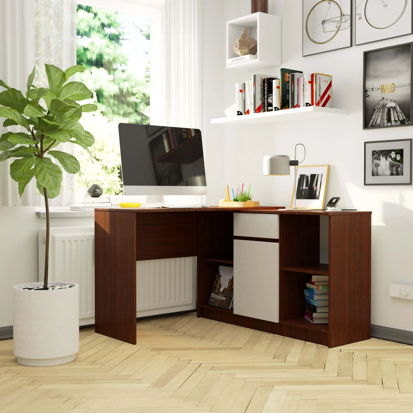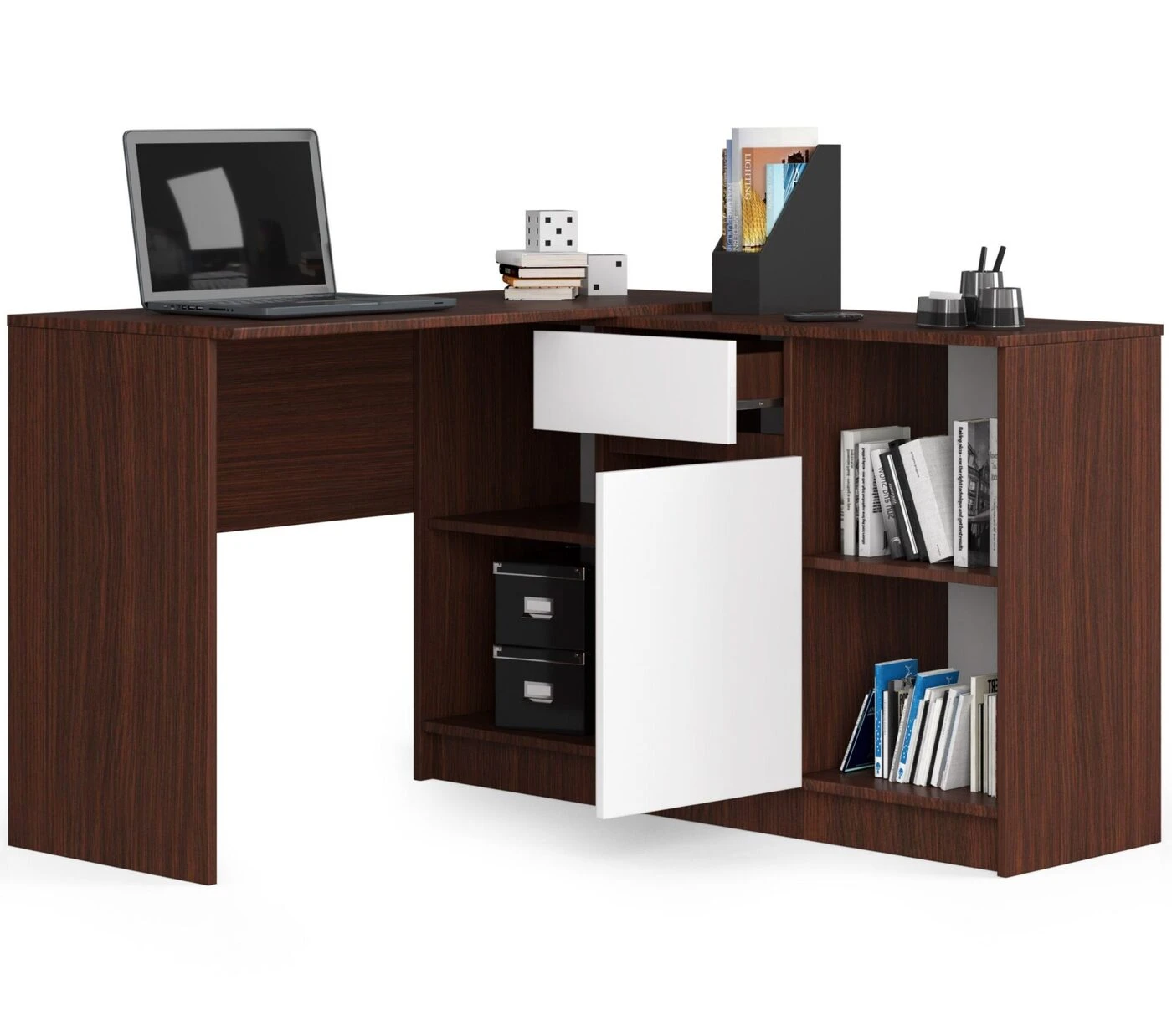 Aprašymas buvo automatiškai išverstas, gali pasitaikyti klaidų. Kampinis rašomasis stalas Zaven B-17 yra unikalus baldas, kuriame patogumas derinamas su efektyvia, universalia išvaizda. Jis yra rinkinio pavidalo – susidedantis iš paprasto rašomojo stalo su stačiakampiu viršumi vienoje pusėje ir komodos su fasadais be rankenų kitoje pusėje. Dėl šios priežasties jis puikiai tinka įrengti funkcinį darbo kambarį ar jaunimo kambarį. Tai leidžia patogiai dirbti su kompiuteriu ar dokumentais, o šiai veiklai reikalingus daiktus susidėti komplekte esančioje komodoje. Kuo šis komplektas išsiskiria iš kitų stalų? , tamsiai rudas spalvos korpuso su baltais spintelių ir stalčių fasadų derinys pagamintas iš aukštos kokybės 16 mm dilimui atsparios laminuotos plokštės paprasta forma, kad būtų lengviau pritaikyti prie bet kokio interjero stalčiai ant patogių ritinėlių kreiptuvų kraštai padengti ABS briauna – didesnis atsparumas pažeidimams 4 patogios lentynos, kurių aukštis leidžia dėti segtuvus dėl universalaus dizaino rašomasis stalas gali būti montuojamas dešinėje arba kairėje pusėje 24 mėnesių garantija savarankiško surinkimo rinkinyje vadovas Šis rašomasis stalas puikiai tinka tiek klasikiniam, tiek moderniam interjerui. Tai itin praktiškas baldas, kurio kampe galima sutvarkyti kambario erdvę. Kampinis stalas gali būti patalpintas bet kokia konfigūracija kambaryje, sukuriant tikrai patogią darbo vietą. Dėl didelio stalviršio atsparumo dilimui baldas puikiai tinka kasdieniam intensyviam naudojimui.
