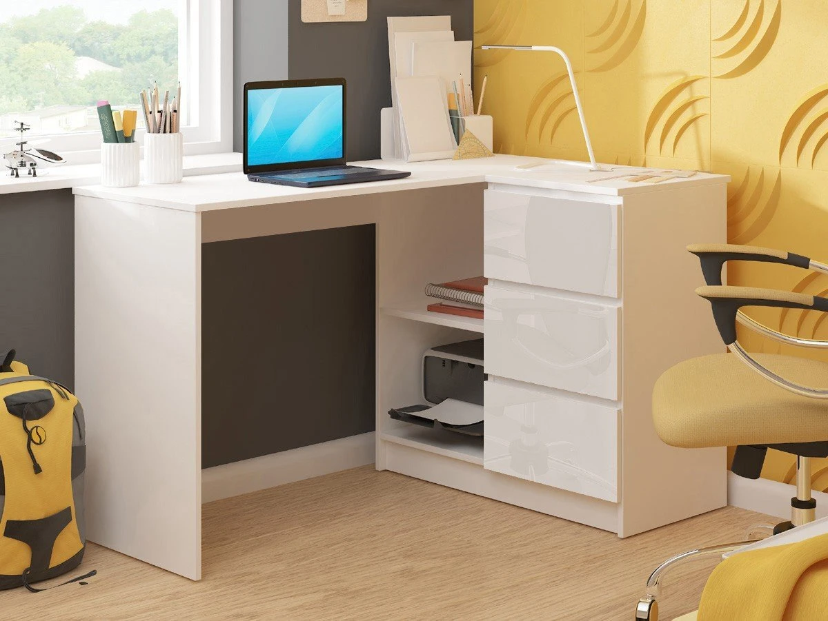 Aprašymas buvo automatiškai išverstas, gali pasitaikyti klaidų. Pateiktas kampinis kompiuterio stalas išsiskiria funkcionalumu ir naudojimo patogumu. Baldai pagaminti iš kokybiškos 16mm laminuotos plokštės, atsparios trinčiai. Be to, jo kraštai padengti ABS ratlankiu, todėl jie yra atsparesni pažeidimams. Rašomasis stalas turi tris stalčius ir lentynas, todėl turėsite daug laisvos erdvės tobulėjimui. Stalčiai juda dėka metalinių ritinėlių kreiptuvų – mechanizmas veikia sklandžiai ir efektyviai. Į juos nesunkiai galite įdėti segtuvus, dokumentus ir net elektroninę įrangą. Rašomasis stalas yra 77 m aukščio, 124,5 cm ilgio ir 85 cm gylio. Jis yra baltos spalvos ir žavi savo blizgesiu – viskas dėl to, kad jo fasadai pagaminti naudojant akrilo technologiją. Rašomasis stalas pasitarnaus tiek darbo vietoje, tiek jaukiai Jūsų namuose. Tai leidžia tinkamai organizuoti darbą ir tuo pačiu užtikrina komfortą. Baldai yra paprastos ir elegantiškos formos, puikiai tiks skandinaviškame ir moderniame interjere. - stalas pagamintas iš Kronospan 16 mm laminuotos plokštės, atsparios trinčiai - Priekinės dalys pagamintos naudojant akrilo technologiją - aukščiausias blizgumo standartas rinkoje - Yra daug vietos bet kokiam išdėstymui - Lengvai tinka segtuvai lentynose - Stalčiai juda ant metalinių ritinėlių kreiptuvų - Matomi kraštai padengti ABS briauna, kad būtų didesnis atsparumas pažeidimams - ""Pasidaryk pats"" stalas - Kampinis kompiuterio stalas - Rankinis tiekiama - 24 mėnesių garantija