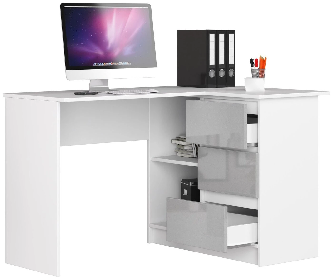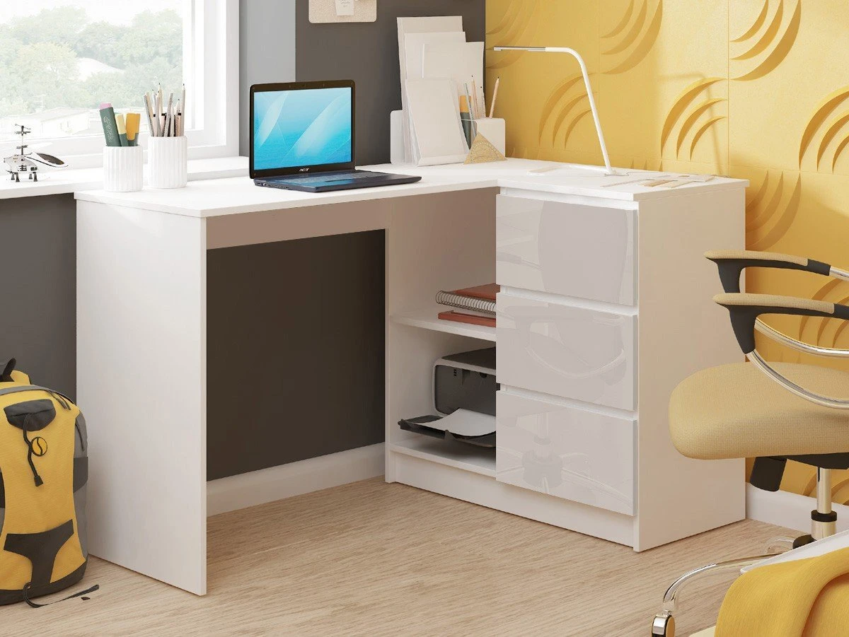 Aprašymas buvo automatiškai išverstas, gali pasitaikyti klaidų. Mūsų pasiūlyme esantis atviras rašomasis stalas yra 77 cm aukščio, 124,5 cm ilgio ir 85 cm gylio. Jis yra baltos spalvos, taip pat turi didelį blizgesį. Taip yra todėl, kad jo fasadai buvo pagaminti naudojant akrilo technologiją. Baldai pagaminti iš kokybiškos 16 mm laminuotos plokštės, kuri yra labai atspari trinčiai. Jis ateina iš Kronospan kompanijos. Rašomasis stalas turi tris stalčius ir dvi lentynas, kurios suteikia daug laisvos erdvės tobulėjimui ir leidžia geriau organizuoti darbą. Matomi baldų kraštai padengti ABS apvadu, todėl jie yra atsparesni pažeidimams. Šiuolaikinės išvaizdos baldai puikiai dera prie skandinaviško interjero ir minimalizmo dvasia dekoruotų kambarių. Tai leidžia patogiai mokytis ir dirbti – puikiai tinka biure ir namuose. Kampinis stalas yra funkcionalus, todėl viskas, ko jums reikia, yra po ranka. Baldai skirti montuoti savarankiškai, o tai palengvina prie užsakymo pridėtos instrukcijos - stalas pagaminta iš 16 mm laminuotos plokštės, atsparios dilimui firmos kronospan - Fasadai pagaminti naudojant akrilo technologiją - aukščiausias blizgesio standartas rinkoje - Turi daug vietos bet kokiam išdėstymui - Aplankus galima lengvai telpa ant lentynų - Stalčiai juda ant metalinių ritinėlių kreiptuvų - Matomi kraštai padengti ABS briauna, kad būtų didesnis atsparumas pažeidimams - ""Pasidaryk pats"" stalas - Kampinis kompiuterio stalas - Pateikiamas vadovas – 24 mėnesių garantija