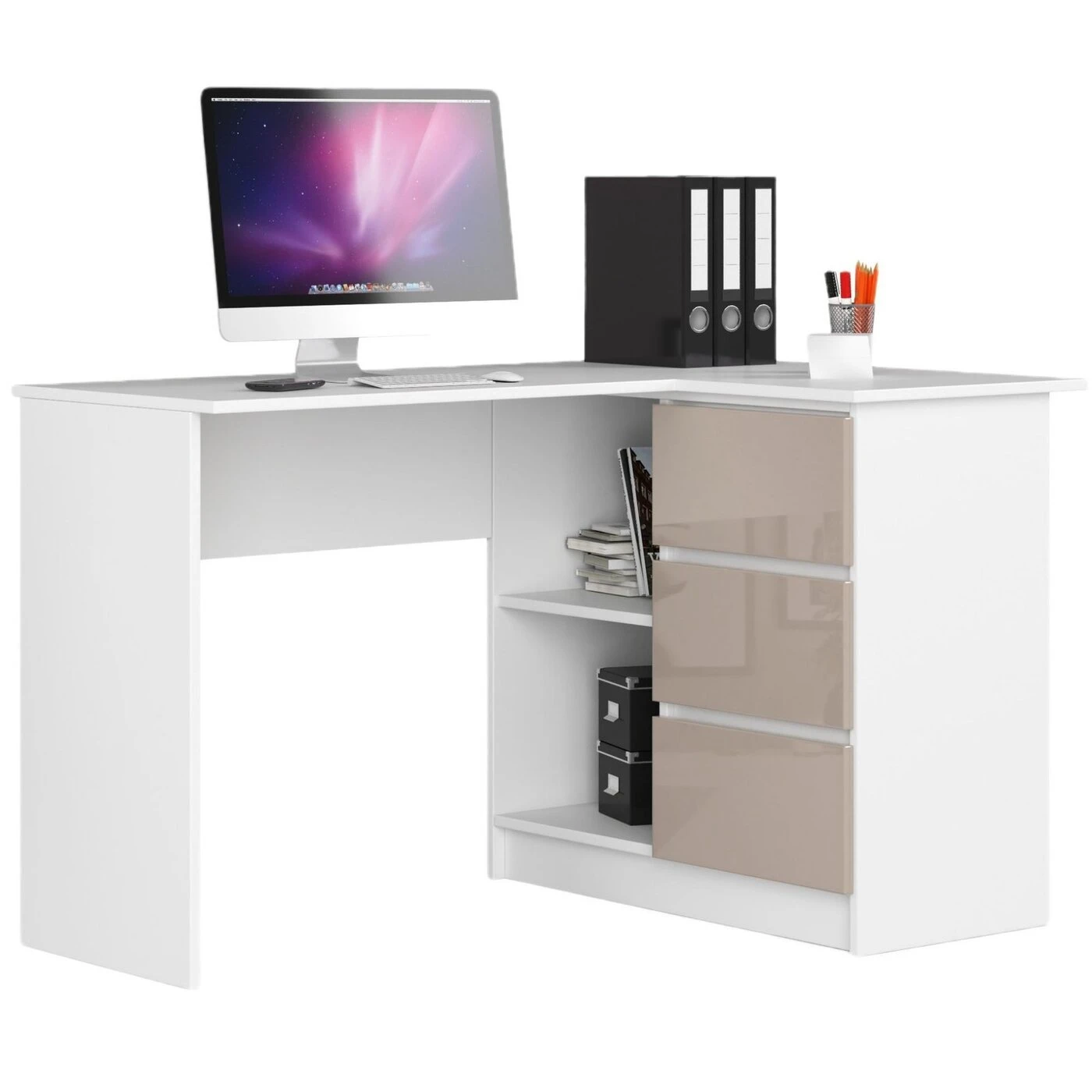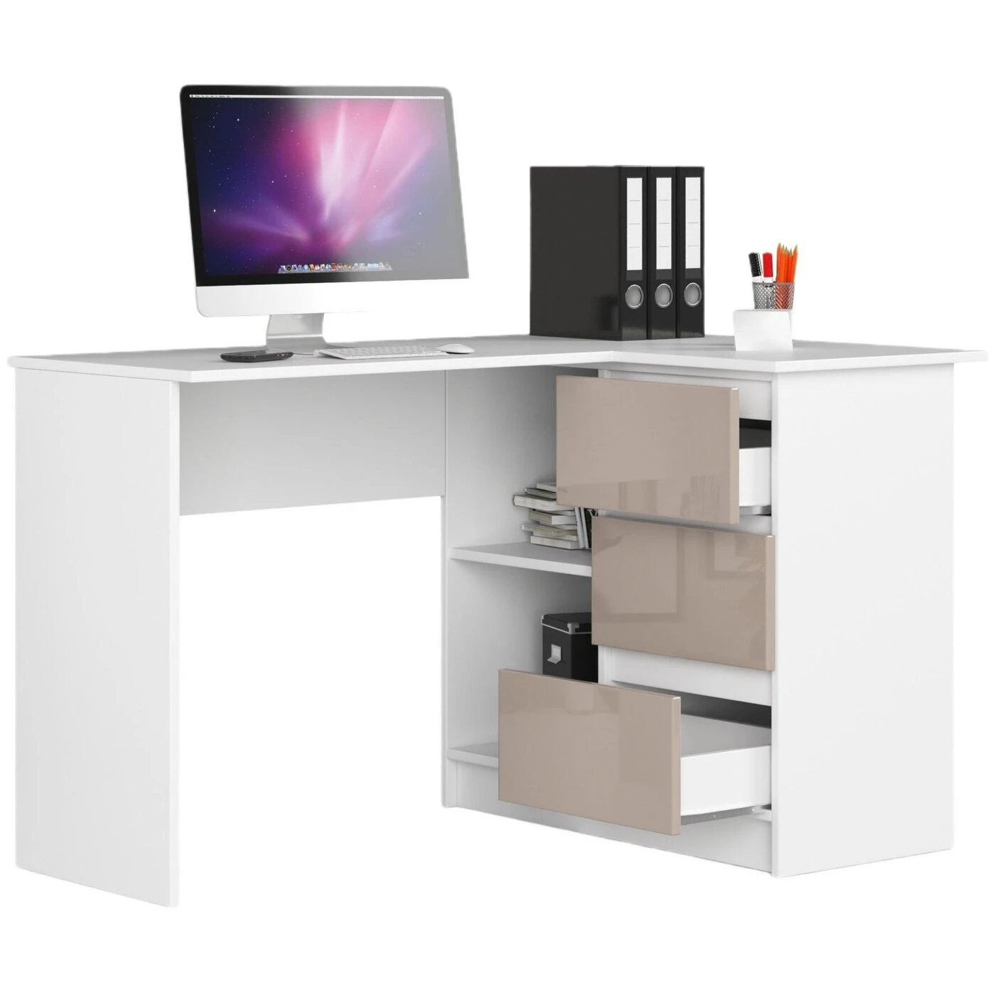 Aprašymas buvo automatiškai išverstas, gali pasitaikyti klaidų. Kampinis kompiuterio stalas su 3 baltos spalvos stalčiais su matiniu baltu arba tamsesniu korpusu gali būti naudingas baldas valdant kompiuterį. Baldai buvo pagaminti iš 1,6 cm storio laminuotos plokštės. Ši medžiaga labai atspari trinčiai, be to, puikiai atrodys ir derės prie kitų baldų. Rašomasis stalas turi 3 erdvias spinteles, kurios leidžia šalia kompiuterio laikyti daugybę priedų. Dėl didelio lentynų dydžio jose tilps ir segtuvai bei knygos. Patogų stalčių darbą užtikrina metaliniai ritininiai kreiptuvai, kurie labai retai užstringa. Baldo kraštai buvo papildomai sutvirtinti ABS apvadu, kad būtų išvengta mechaninių pažeidimų. Rašomasis stalas yra surenkamas, šį darbą tikrai palengvins prie gaminio pridėtas intuityvus vartotojo vadovas. Mobilus, stilingas apie 120 cm aukščio rašomasis stalas lengvai pritaikomas prie mažesnių ir didesnių kambario kampų. - Rašomasis stalas pagamintas iš Kronospan laminuotos plokštės, 16 mm atsparus trinčiai - Fasadai pagaminti naudojant akrilo technologiją - aukščiausias blizgumo standartas rinkoje - Yra daug vietos bet kokiam išdėstymui - Aplankai lengvai telpa lentynose - Stalčiai juda ant metalinio volelio kreiptuvai - Matomi kraštai padengti ABS briauna, kad būtų didesnis atsparumas pažeidimams - Savarankiško surinkimo stalas - Kampinis kompiuterio stalas - Pristatomas vadovas - Garantija 24 mėn.