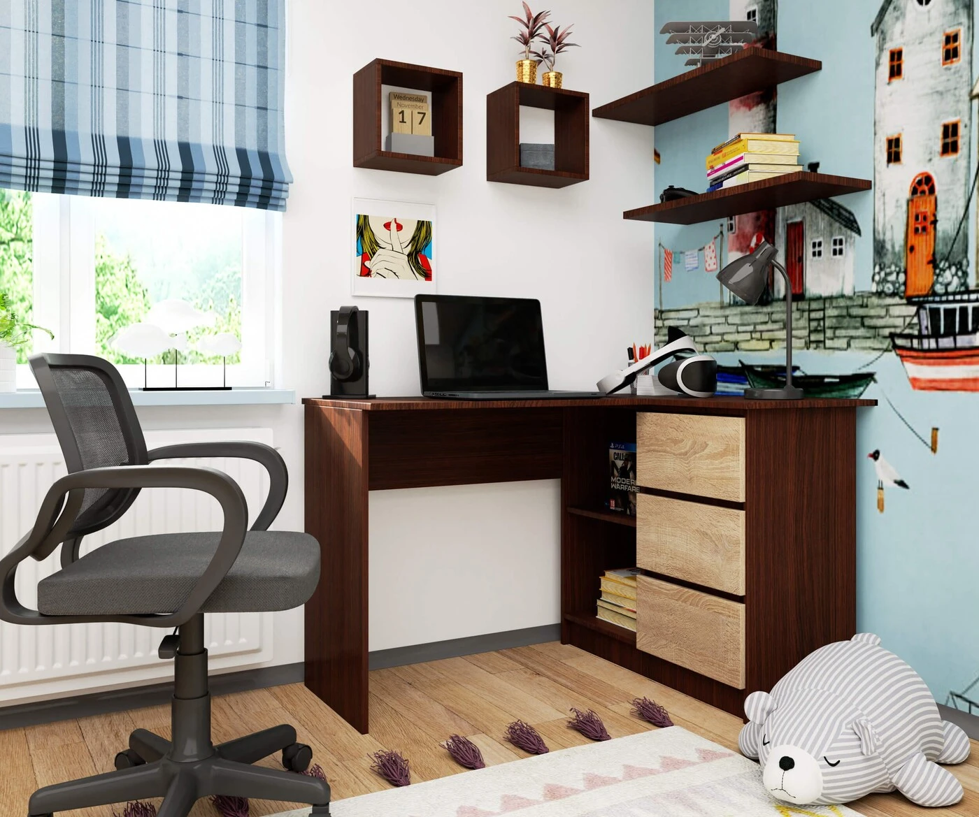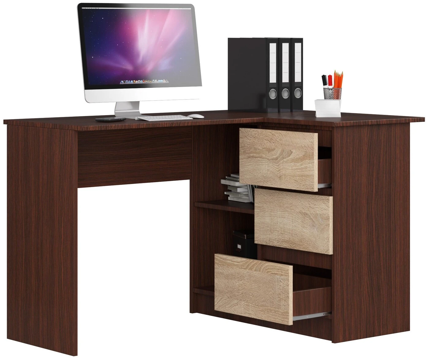 Aprašymas buvo automatiškai išverstas, gali pasitaikyti klaidų. Kampinis stalas su trimis stalčiais yra, tamsiai rudas ir, ąžuolo spalvos spalvų pasiūlymas. Baldai pagaminti iš 16 milimetrų storio Kronospan laminuotos plokštės, kuri yra labai atspari dilimui. Produktas suteikia vietos bet kokiam išdėstymui. Tokie daiktai kaip knygos ir segtuvai gali lengvai tilpti į lentynas. Stalčiai juda metalinių ritininių kreiptuvų pagalba. Matomi rašomojo stalo kraštai padengti ABS briauna, užtikrinančia aukštą atsparumą pažeidimams. Baldai skirti montuoti savarankiškai. Stalui suteikiama dvejų metų garantija. Šis pasiūlymas skirtas žmonėms, kurie ketina įsirengti jaunimo kambarį, įmonės biurą ar namų biurą. Tai patrauklios kainos, puikios kokybės, madingo dizaino ir funkcionalumo derinys, kuris biuro baldų atveju yra svarbiausias. Produktas suteikia vietos darbui ar mokymuisi ir reikalingų biuro reikmenų laikymui. Nedvejodami įsigykite. – Rašomasis stalas iš Kronospan trinčiai atsparios 16 mm laminuotos plokštės - Yra daug vietos bet kokiam išdėstymui - Segtuvai lengvai telpa lentynose - Stalčiai juda ant metalinių ritinėlių kreiptuvų - Matomi kraštai padengti ABS apvadu, garantuojančiu didesnį atsparumą pažeidimams – „Pasidaryk pats“ rašomasis stalas – Kampinis kompiuterio stalas – Pateikiamas vadovas – 24 mėnesių garantija