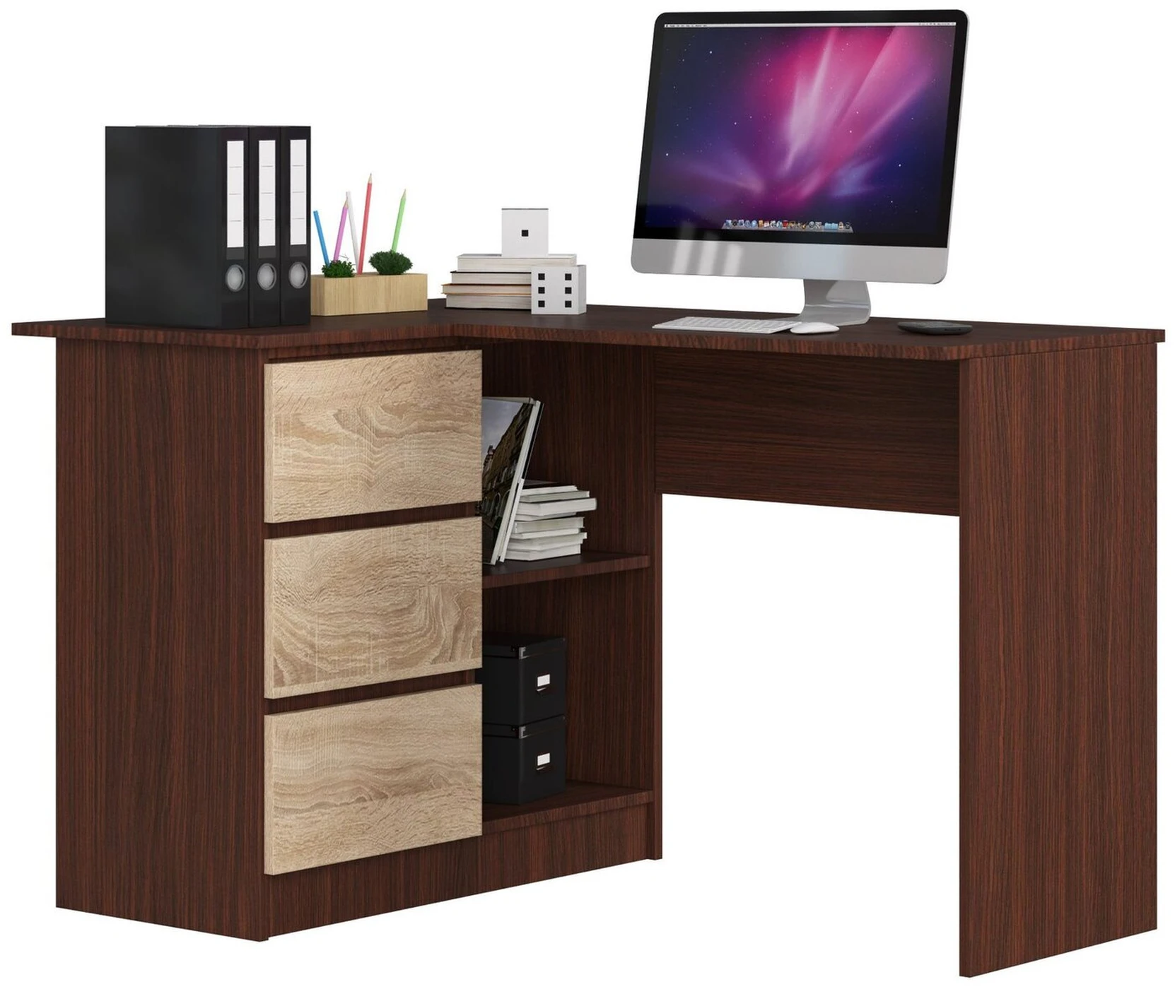 Aprašymas buvo automatiškai išverstas, gali pasitaikyti klaidų. Ruda yra nesenstanti spalva, tinkanti tradiciniam interjerui ir dizaino aksesuarams. Lengvai valomas ir labai elegantiškas, todėl puikiai tinka studijoms namuose ar įmonės biure. Vienas iš daugelio įdomių mūsų internetinės parduotuvės pasiūlymų yra rašomasis stalas, kuriame dera du rudos atspalviai –, tamsiai rudas ir, ąžuolo spalvos. Rašomasis stalas pagamintas iš laminuotos plokštės (16 milimetrų storio), kuri itin atspari trinčiai. Matomi kraštai padengti didelio stiprumo ABS apvadu. Kampinis rašomasis stalas, kurio matmenys 124,5 cm x 77 cm x 85 cm, yra pasiūlymas, kuriam taikoma 24 mėnesių garantija. Baldą sudaro stalviršis, uždara spintelė, dvi atviros lentynos, taip pat trys erdvūs stalčiai. Gaminys skirtas montuoti savarankiškai pagal komplekte esančias instrukcijas. Taip pat raginame sužinoti apie susijusius produktus, kurie padės sukurti funkcionalią ir akį traukiančią biuro erdvę. - Rašomasis stalas iš 16 mm laminuotos plokštės kronospan, atsparios dilimui - Yra daug vietos bet kokiam išdėstymui - Aplankai lengvai telpa lentynose - Stalčiai juda ant metalinių ritinėlių kreiptuvų - Matomi kraštai padengti ABS briauna, kad būtų didesnis atsparumas pažeidimams - Savaiminio surinkimo stalas - Kampinis kompiuterio stalas - Pristatymo vadovas - Garantija 24 mėn. /p>