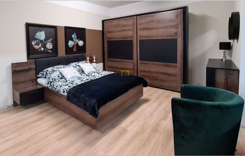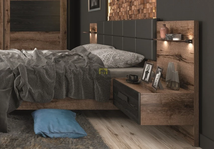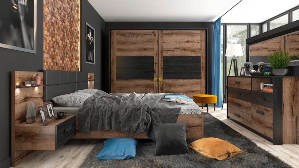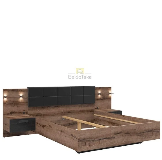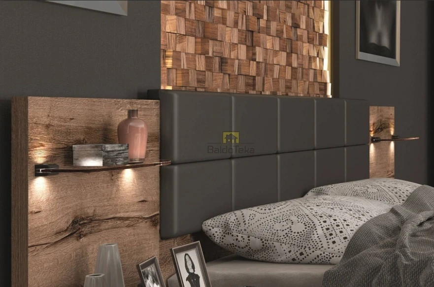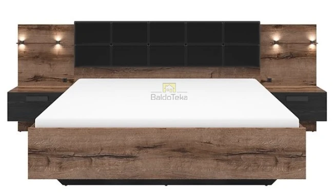 Komplektacijoje su naktinėmis spintelėmis, su LED apšvietimu, USB jungtimis.