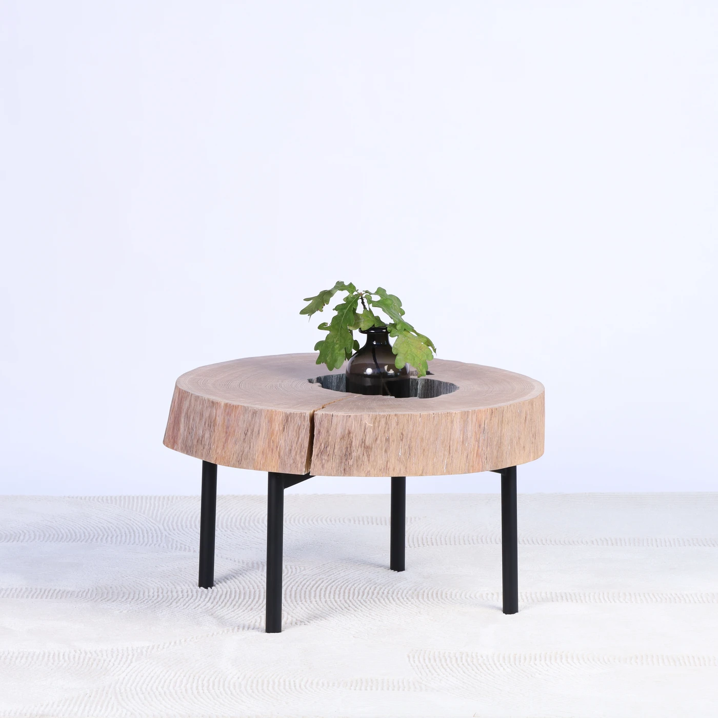 Ąžuolo masyvo kavos staliukai, balintas natūralus Ąžuolas, su metalinėmis kojelėmis.