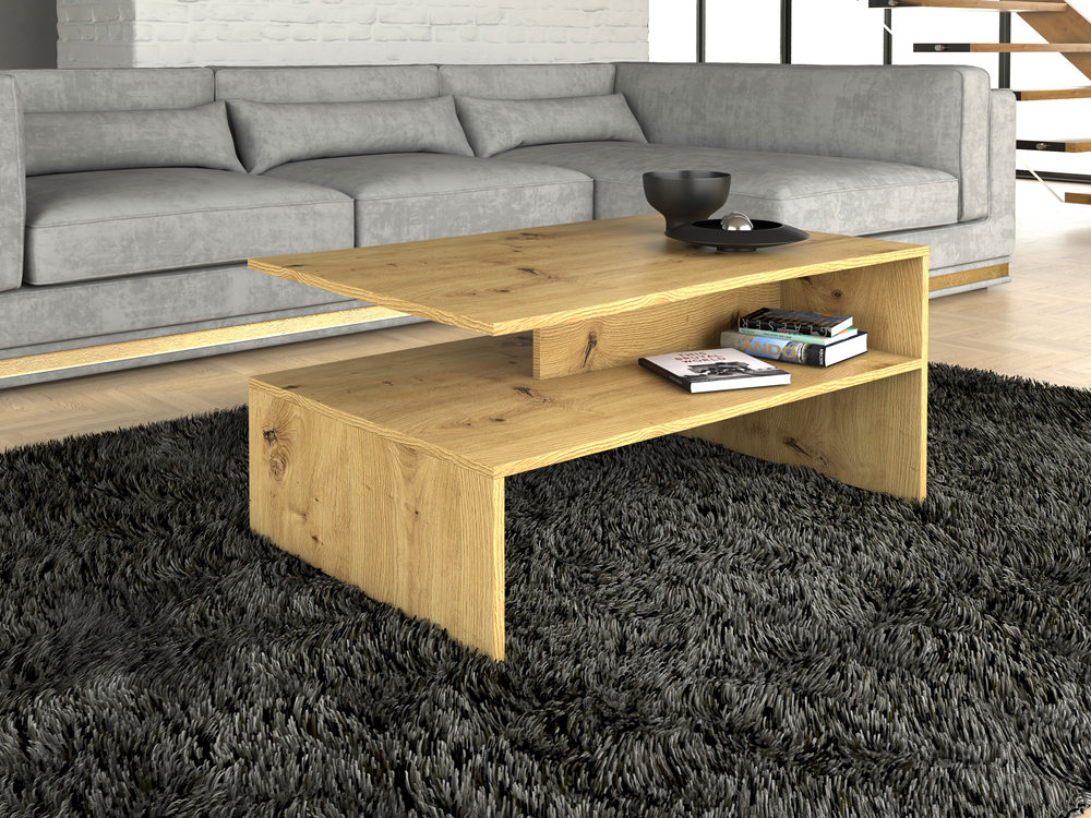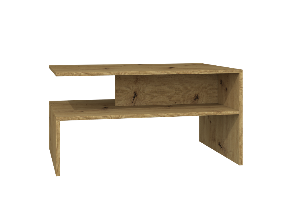 modernus, minimalistinio dizaino staliukas;apačioje erdvi lentyna Jūsų norimiems daiktams pasidėti;pagamintas iš 16 mm storio laminuotos medžio drožlių plokštės (MDP); briaunos dailintos ABS;išmatavimai: plotis - 60 cm, ilgis - 90 cm, aukštis - 45 cm;spalva: ruda (artisan oak);